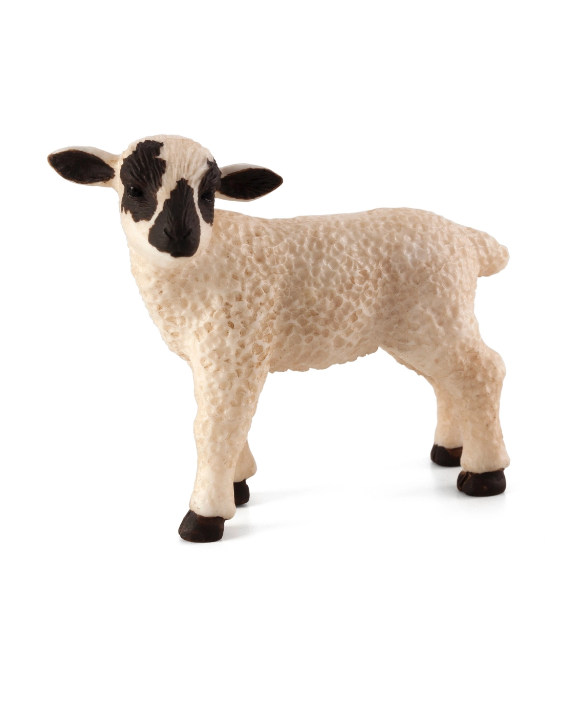 Cette reproduction d'un agneau au repos capture la douceur et la tendresse caractéristiques des jeunes ovins. Cette pièce Schleich, retirée en 2014, est devenue un objet recherché des collectionneurs pour sa pose naturelle et attachante.