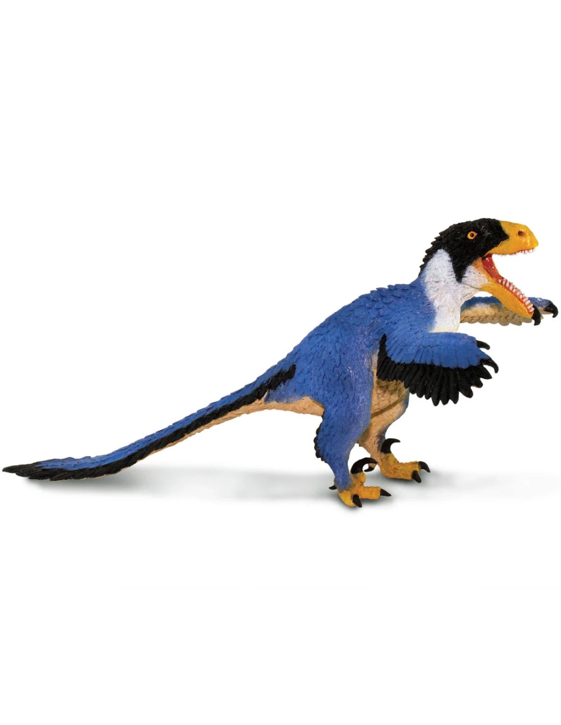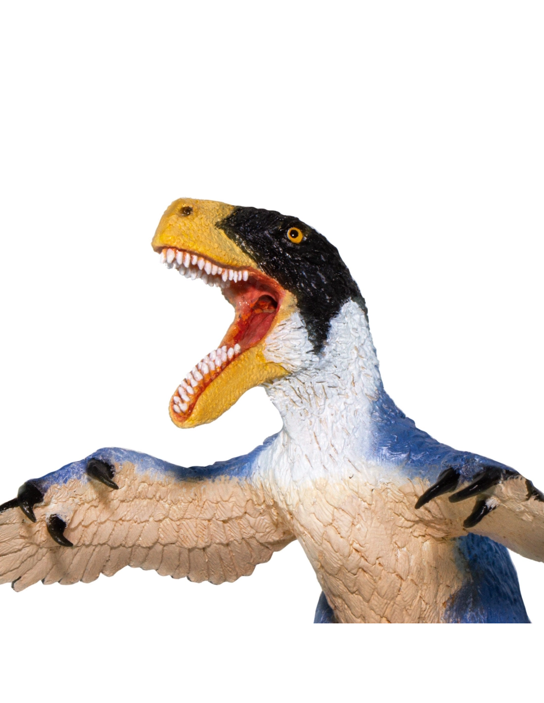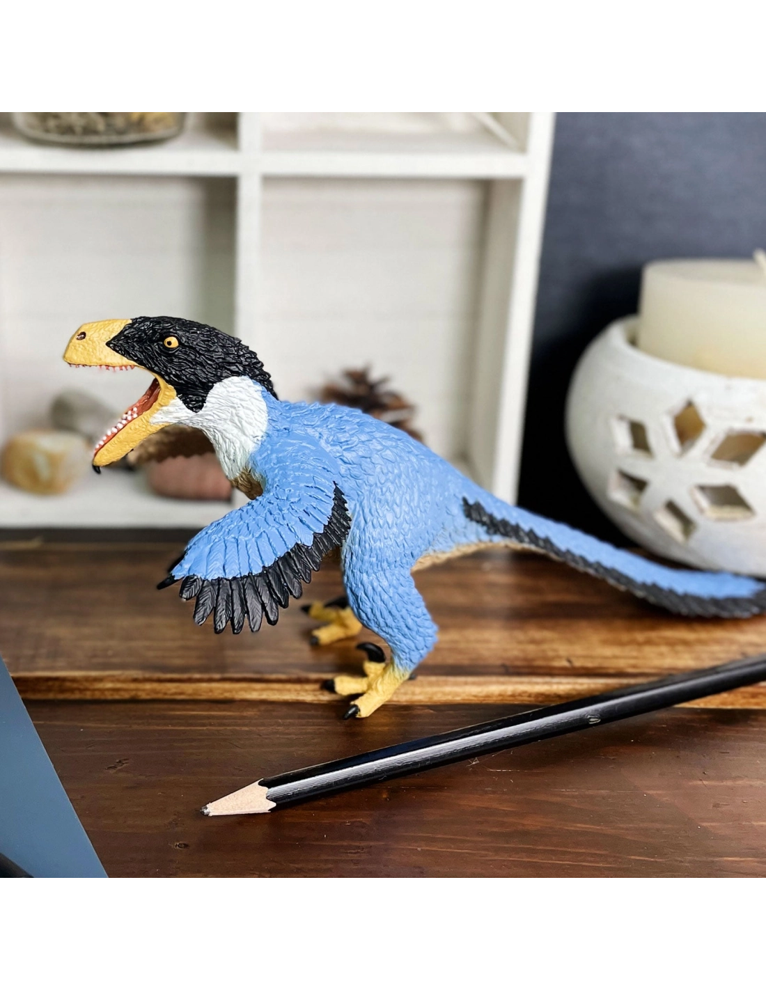 L'Anzu était un oviraptorosaure géant, parent préhistorique des oiseaux actuels. Son surnom de "poulet de l'enfer" vient de sa taille impressionnante et de sa crête distinctive. Ses plumes et son bec sans dents témoignent de l'évolution des dinosaures vers les oiseaux.