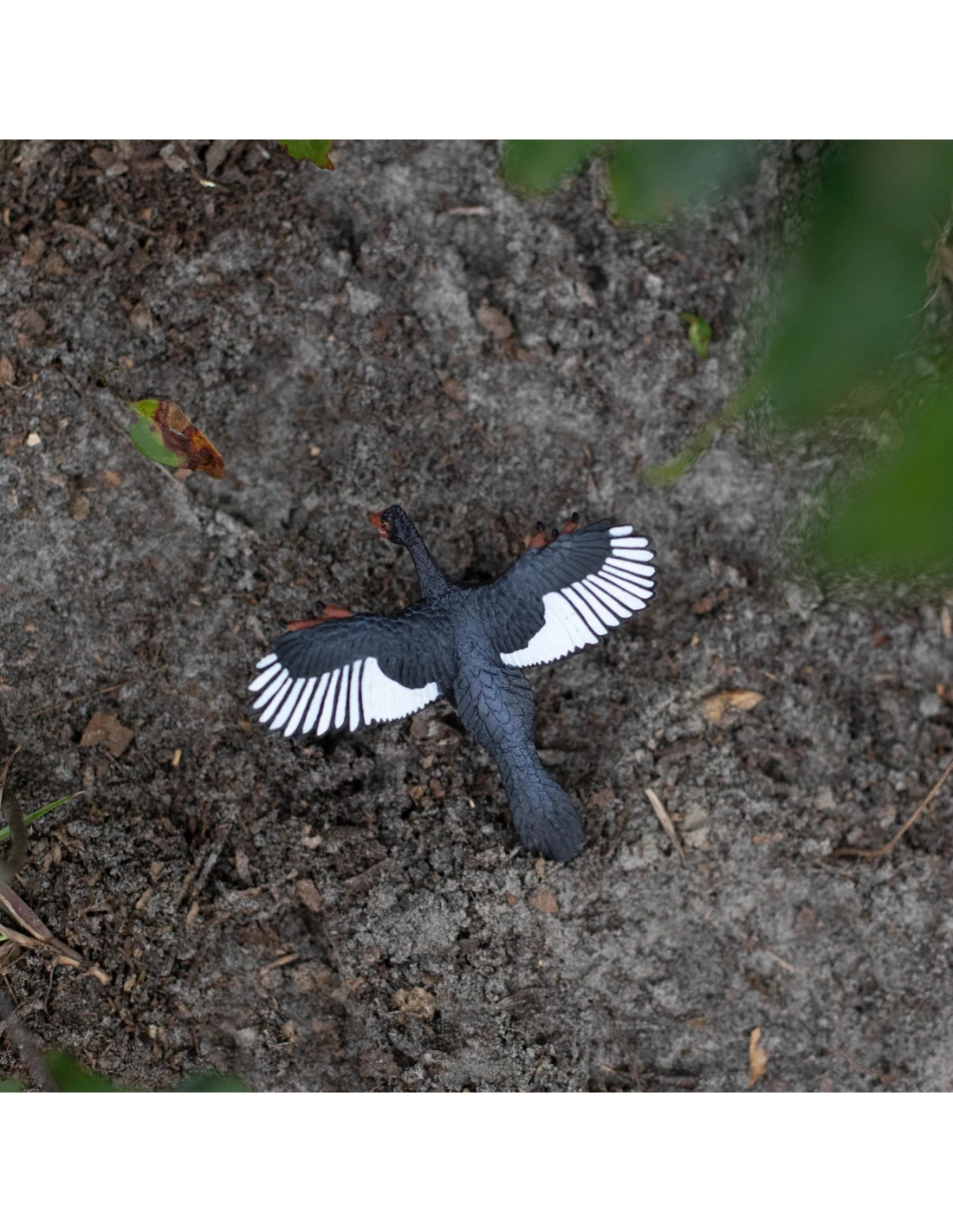 L'Archaeopteryx combine des caractéristiques de dinosaure théropode (queue osseuse, griffes) et d'oiseau (plumes, os creux). Découvert dans les calcaires de Solnhofen, il représente l'une des preuves les plus importantes de l'évolution et du lien entre dinosaures et oiseaux.