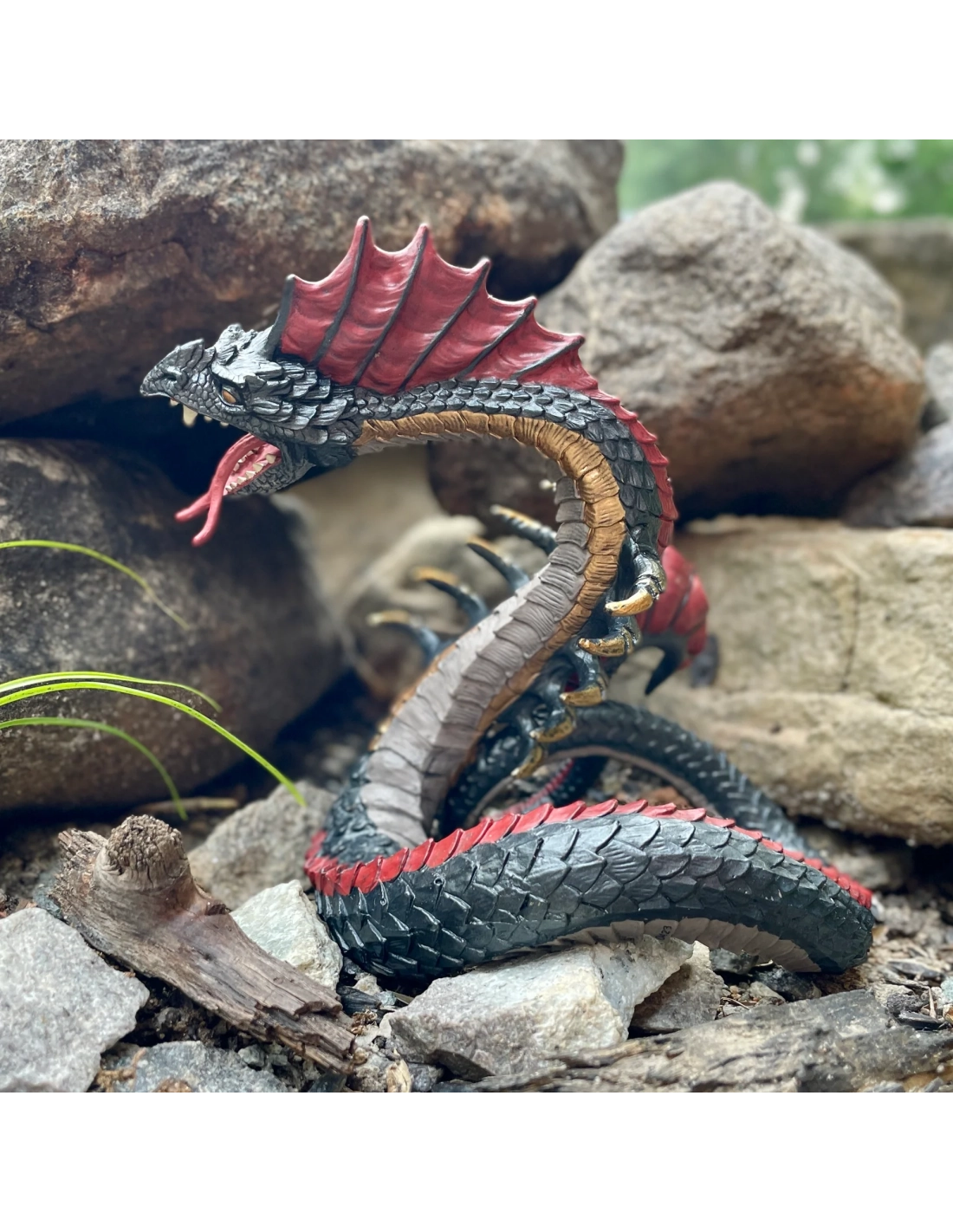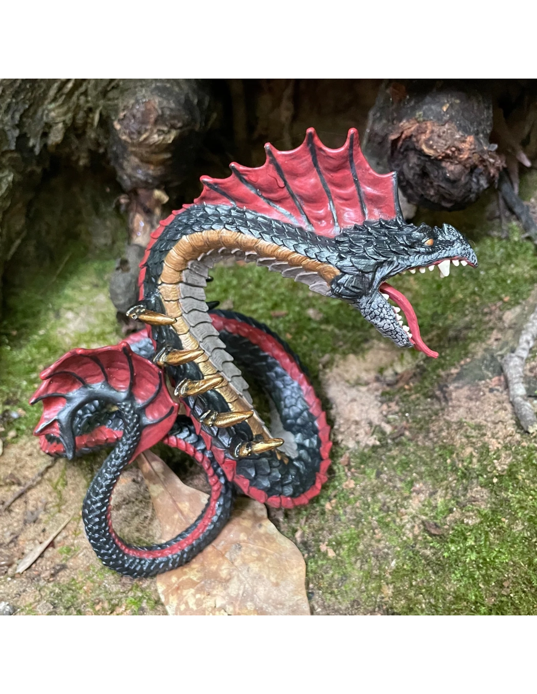 Cette figurine de Basilic sinueuse et serpentine capture toute la férocité de ce roi mythique des serpents. Bien que sa bouche béante pleine de dents et sa langue fourchue puissent être terrifiantes, vous pouvez heureusement regarder dans ses yeux dorés sans crainte. C'est le jouet parfait pour tout amateur de créatures fantastiques et mythologiques.