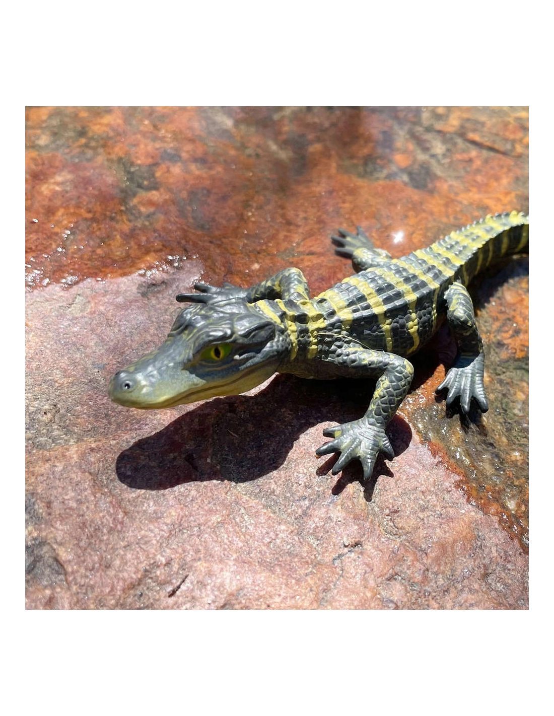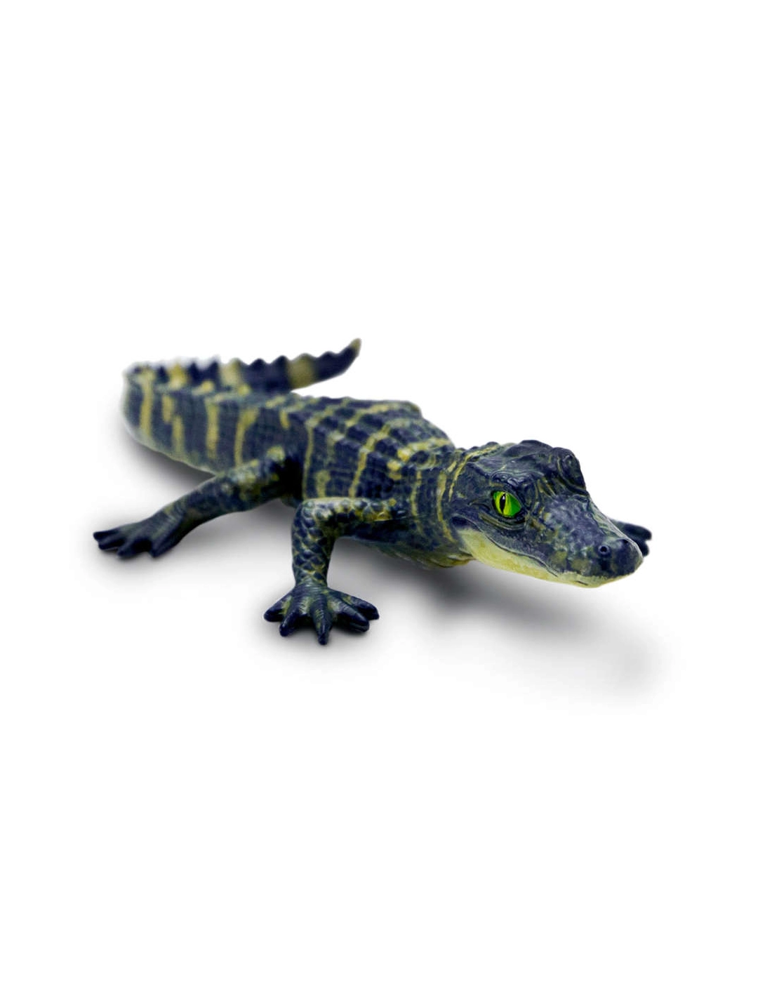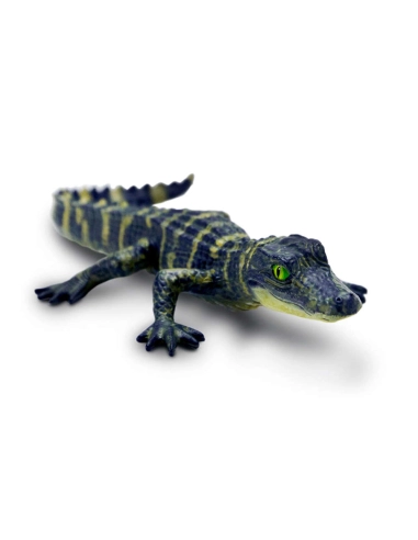 Cette figurine représente un bébé alligator avec réalisme. Chaque détail physique est reproduit malgré sa petite taille : les écailles, les petites pattes palmées, la queue musculeuse ou encore les impressionnantes mâchoires, prémisse de sa nature future de redoutable prédateur.