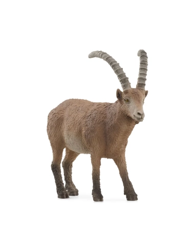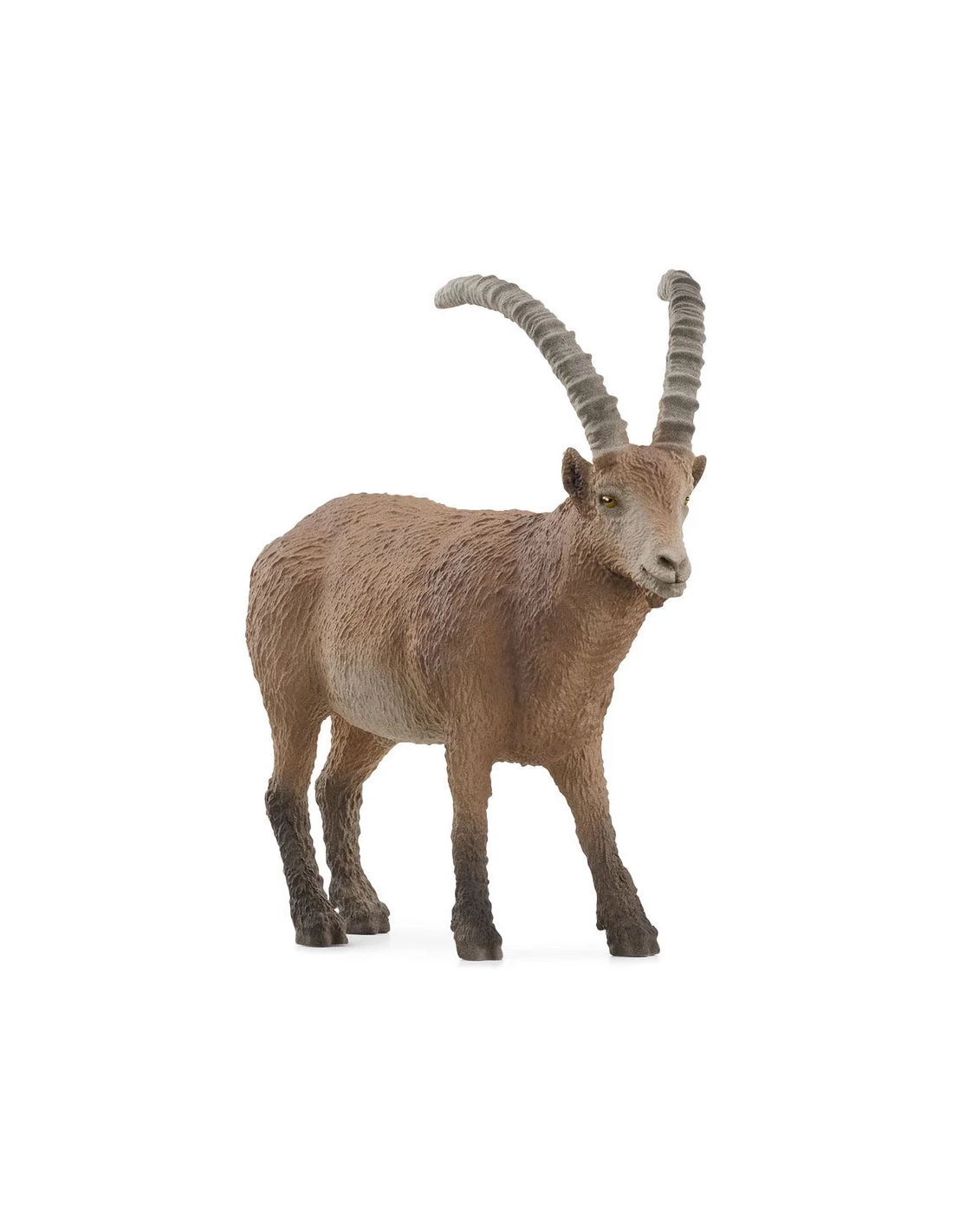 Cette figurine caprin réaliste reproduit le Bouquetin des Alpes, symbole de la faune montagnarde européenne (*Capra ibex*). Le modèle Schleich présente les cornes caractéristiques et la morphologie robuste de ce caprin sauvage adapté aux environnements rocheux d'altitude.
