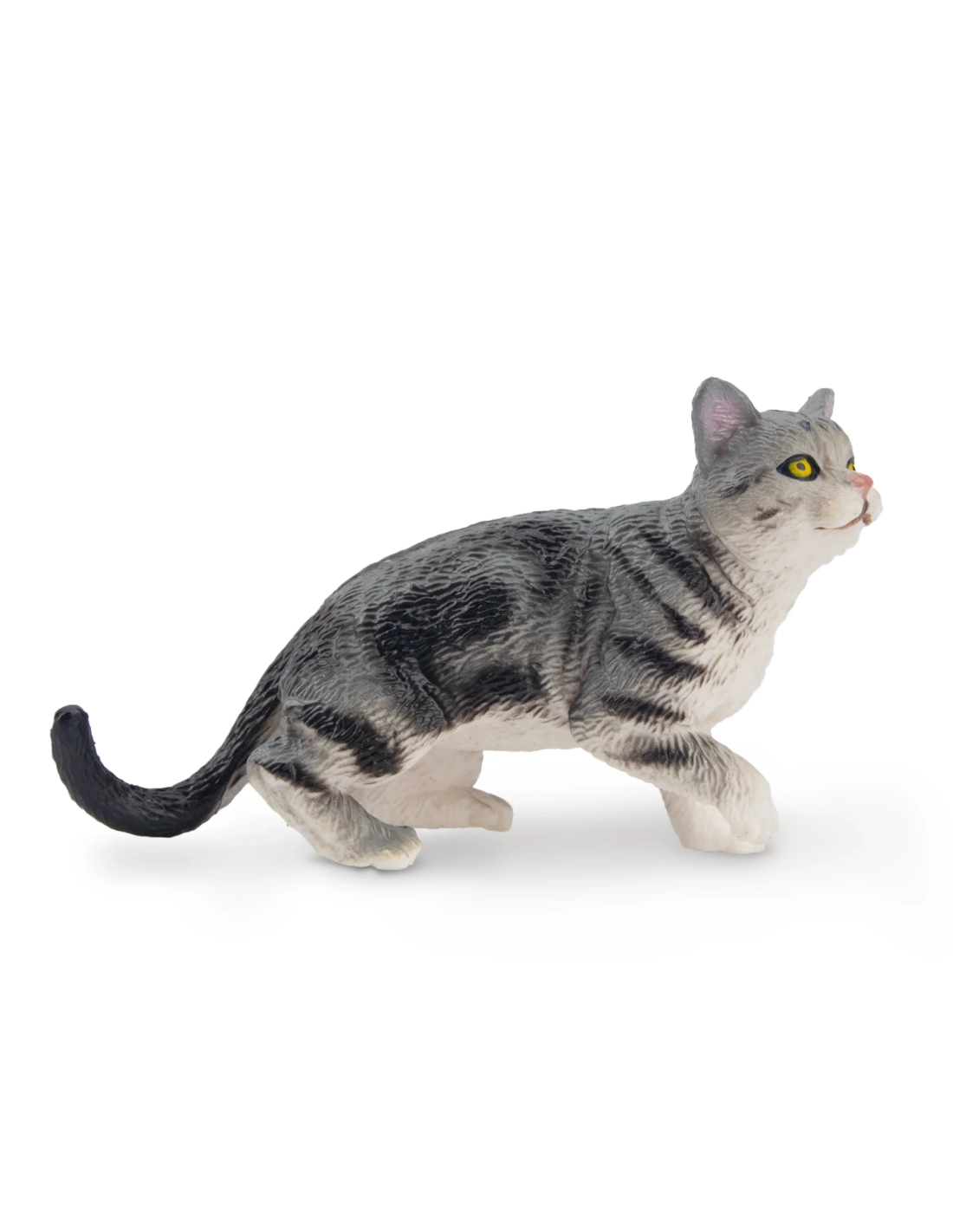 Chat tigré orange en marche signé Toymany : figurine jouet qui apporte du mouvement, peinture propre et style naturel. Parfait pour les scènes d’animaux de compagnie.