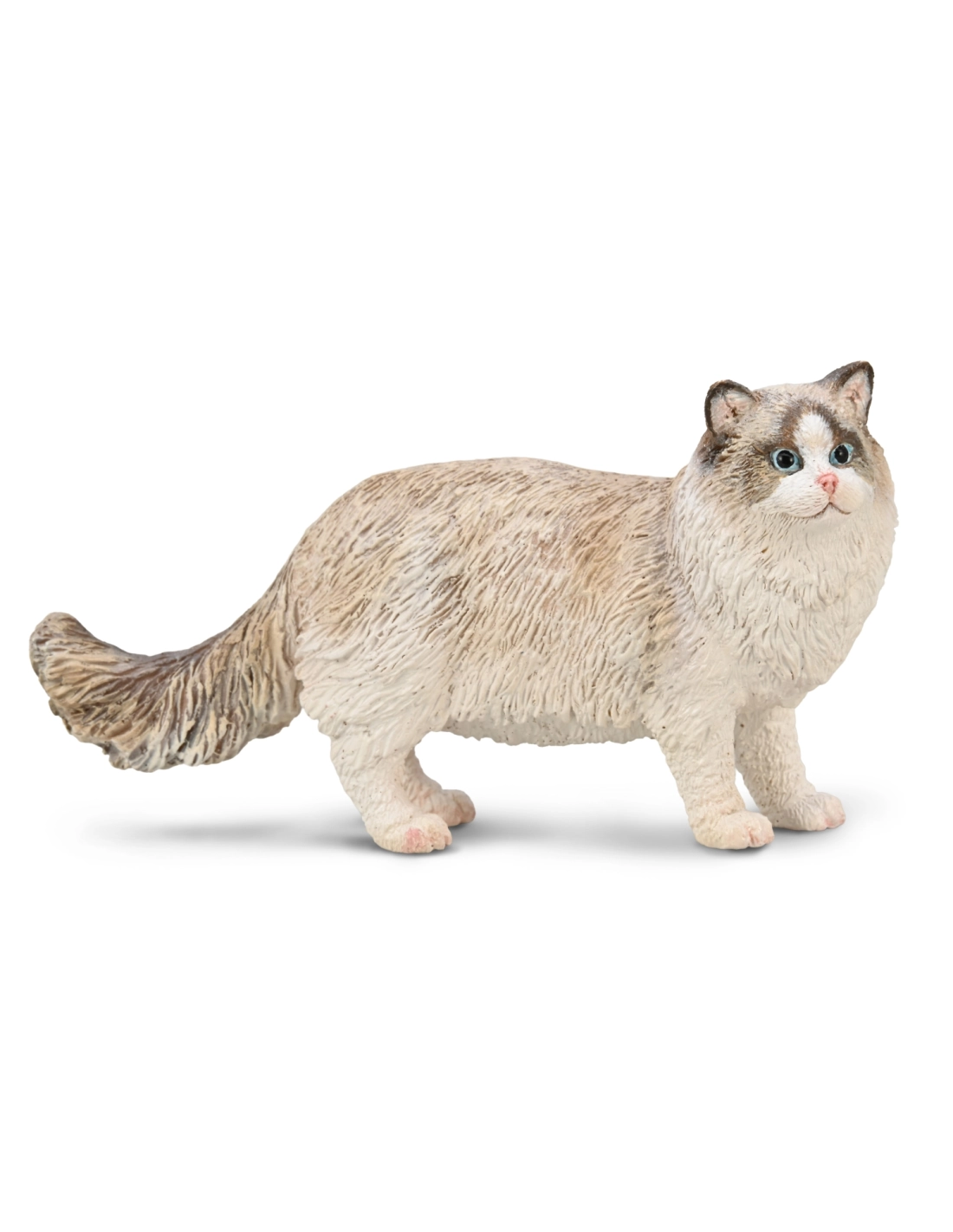 Le gabarit imposant du Ragdoll adulte est restitué : plus large et plus long que les figurines de chats standard, fidèle aux proportions de la race.