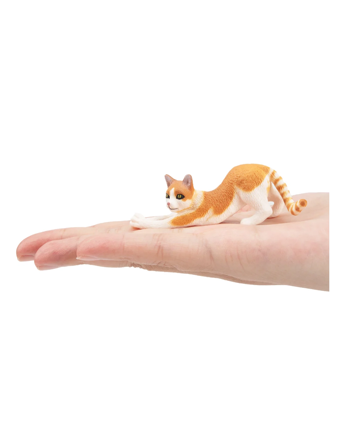 Figurine chat roux & blanc qui s’étire Toymany – mini