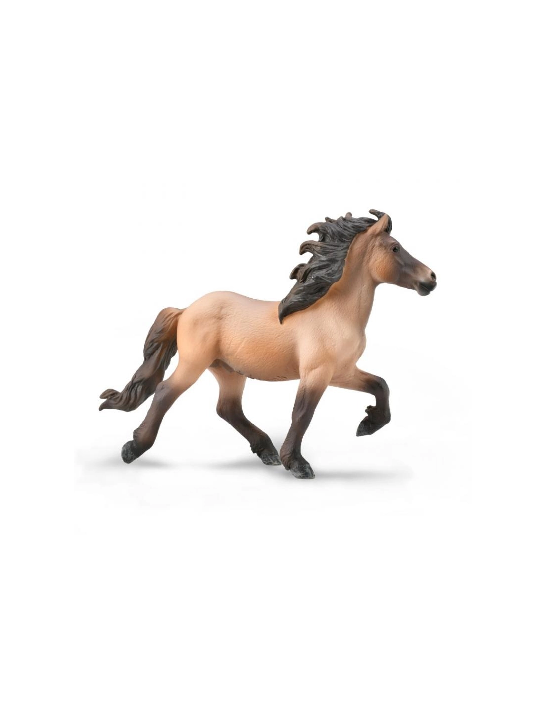 Cet étalon, fidèlement reproduit en couleur marron clair, est un chef-d'œuvre de réalisme et de qualité. Son allure élégante et ses gaits uniques sont capturés avec précision, offrant une représentation authentique de cette race islandaise robuste et agile, connue pour son tölt caractéristique.