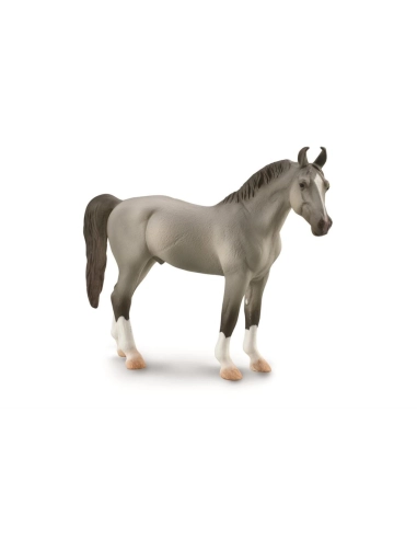 Cette reproduction d'un étalon Quarter Horse capture la puissance et la musculature impressionnante de cette race américaine. La figurine Schleich met en valeur les caractéristiques typiques de ce cheval polyvalent, reconnu pour sa rapidité sur courte distance.