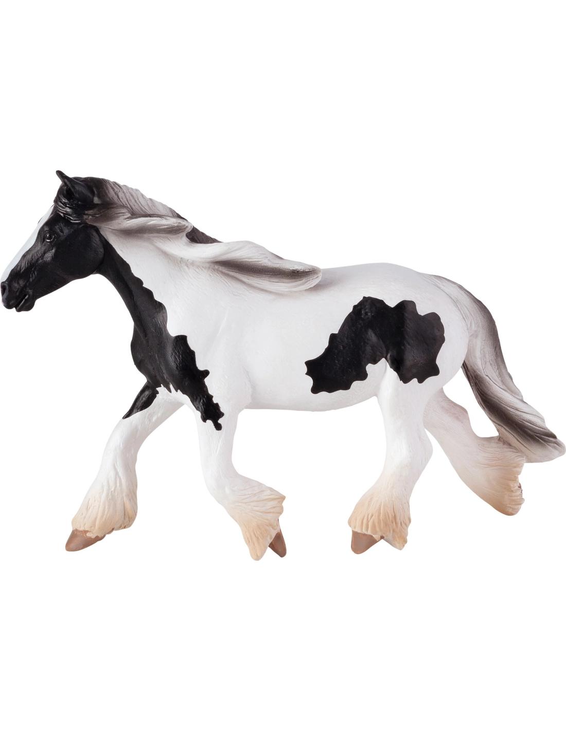 Cette figurine poulain Shire présente une robe noire avec des balzanes blanches étendues sur les quatre membres. Ce modèle Mojo en position debout capture l'attitude curieuse et l'aplomb naturel du jeune Shire, offrant aux collectionneurs une représentation fidèle de cette race de trait dans sa phase juvénile.
