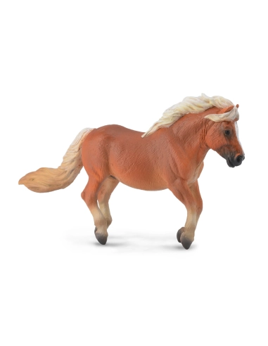 Figurine poney Shetland Papo reproduction authentique. Plus petit équidé monde adaptation biotope rigoureux. Race britannique îles Écosse tradition minière.