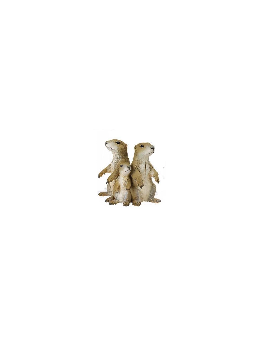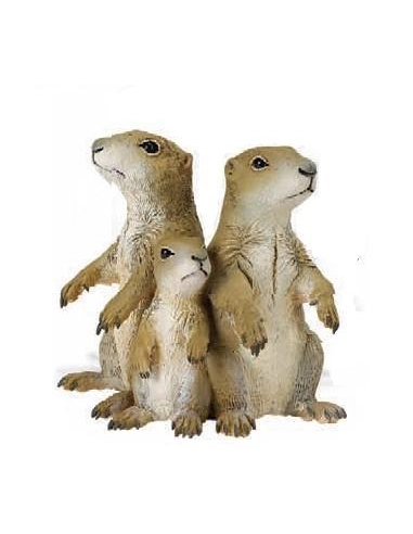 Ce trio de figurines représente les chiens de prairie dans une pose classique de vigilance, un comportement typique lorsqu'ils surveillent leur environnement. Leur apparence est soigneusement détaillée, reflétant fidèlement leur fourrure douce et leurs grands yeux noirs expressifs.