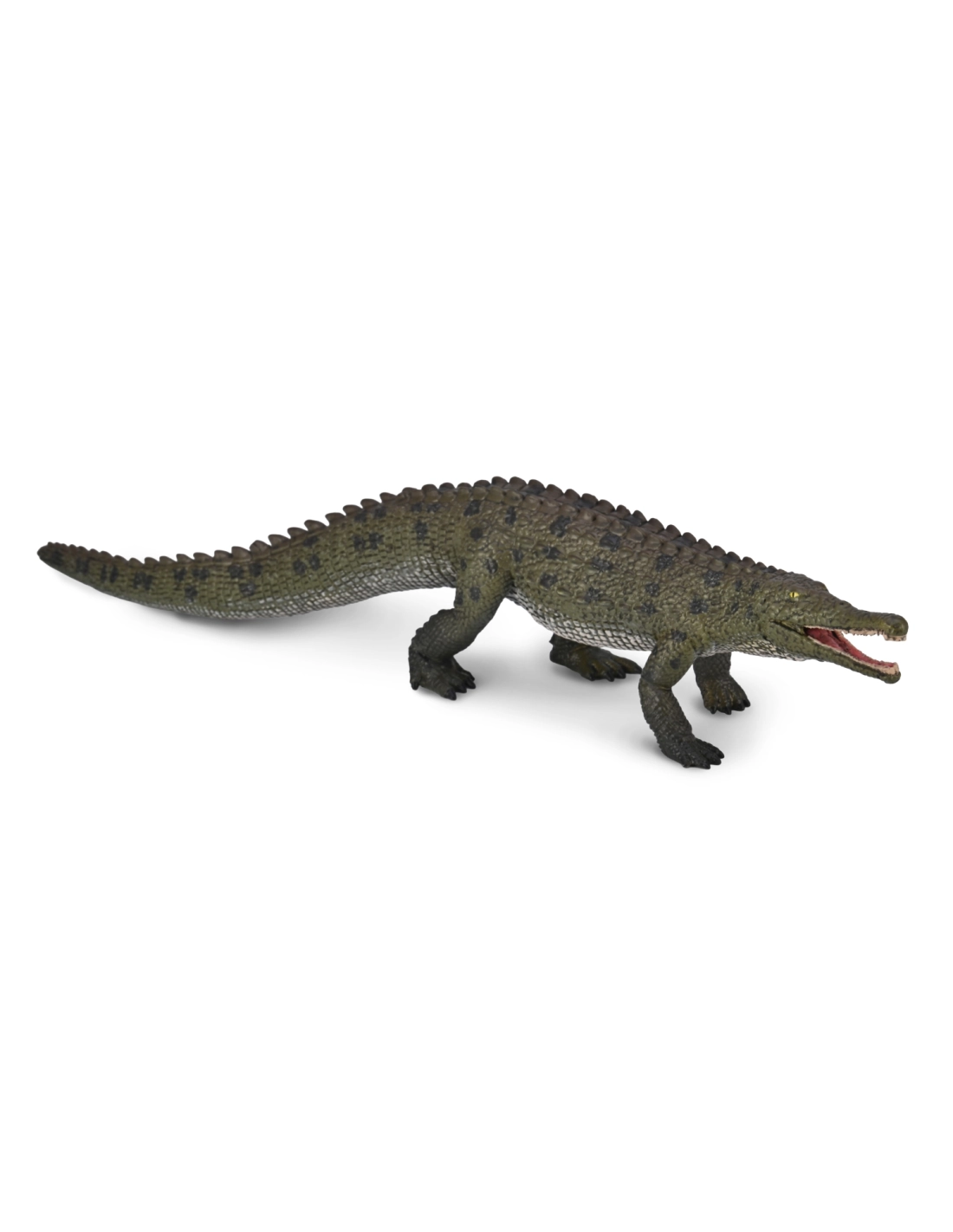 La gueule de la figurine s'ouvre et se ferme. Ce n'est pas un gadget : c'est ce qui permet à l'enfant de rejouer la posture de chasse, d'observer la dentition, de comprendre par le geste ce que signifie « prédateur embusqué en bordure d'eau ». La manipulation active ancre la mémoire bien mieux qu'une image fixe. CollectA intègre ce mécanisme sans fragiliser la figurine ni dégrader le réalisme anatomique.