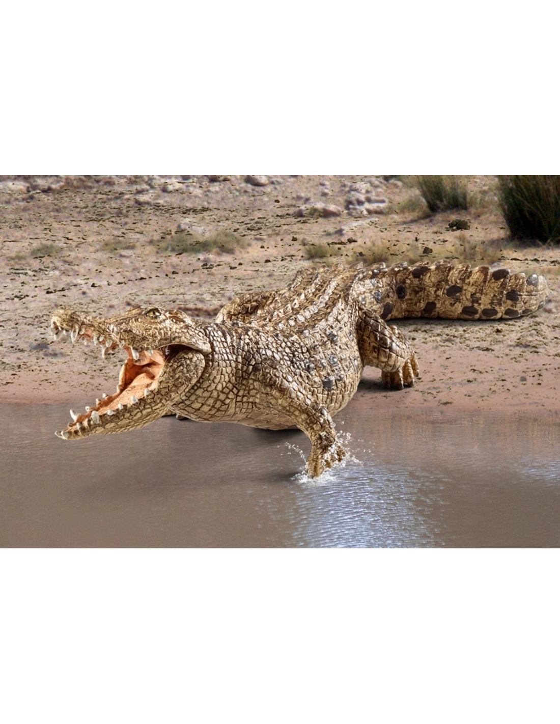 Le crocodile du Nil peuple les rivières, lacs et zones humides d'Afrique. Chasseur opportuniste, il se nourrit principalement de poissons mais peut capturer des proies terrestres venues s'abreuver. Véritable ingénieur des écosystèmes, il contribue à maintenir l'équilibre des populations animales dans son habitat.