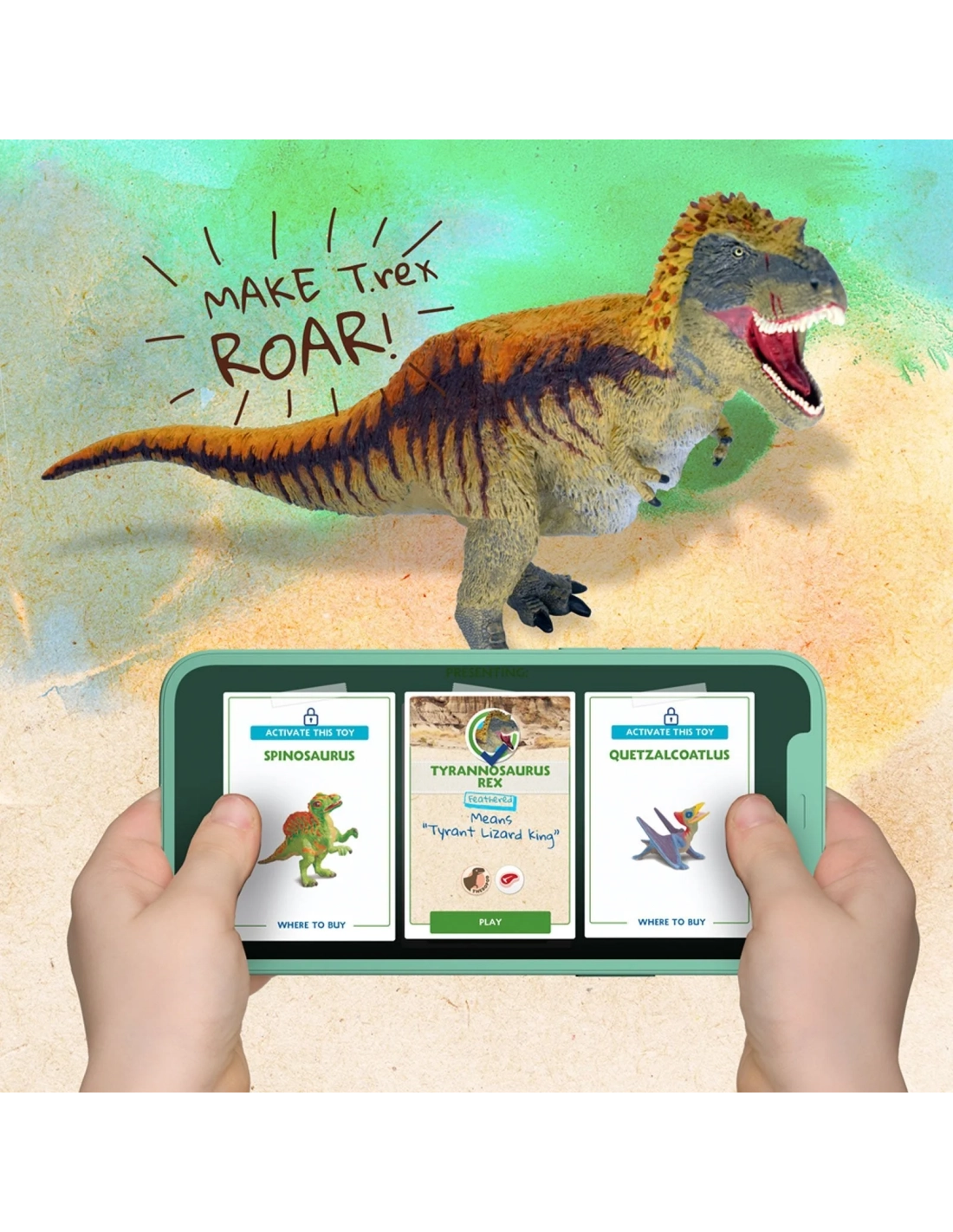 Ce redoutable Tyrannosaurus rex, "le roi des lézards tyrans", sort tout droit du nouveau long métrage de Dino Dana ! Avec des détails précis du film et des fonctionnalités innovantes de réalité augmentée, ce T-Rex est très amusant.