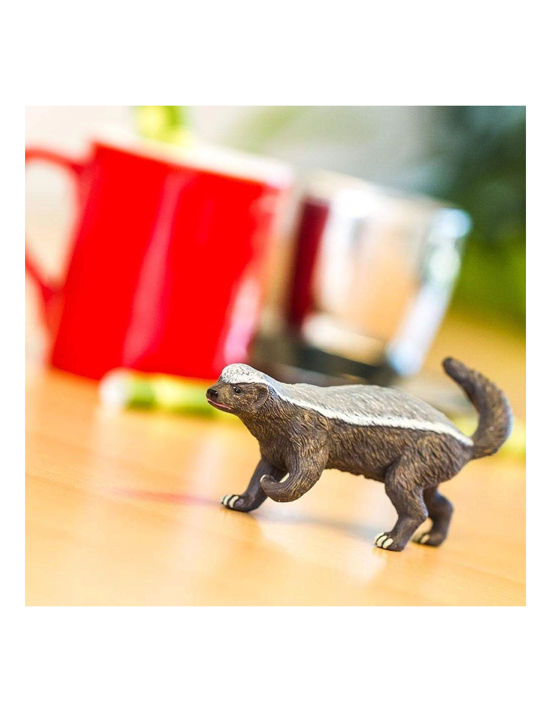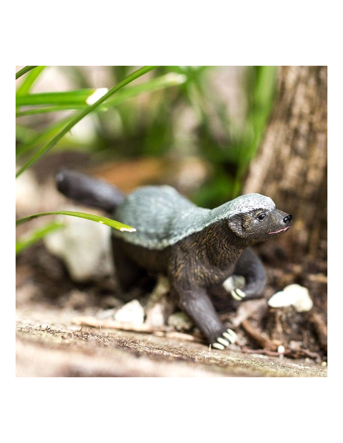 La figurine de blaireau Mojo est un modèle réaliste de cet animal de la forêt. Peinte principalement en noir avec des rayures blanches distinctives sur son visage, cette figurine capture l’aspect naturel du blaireau.