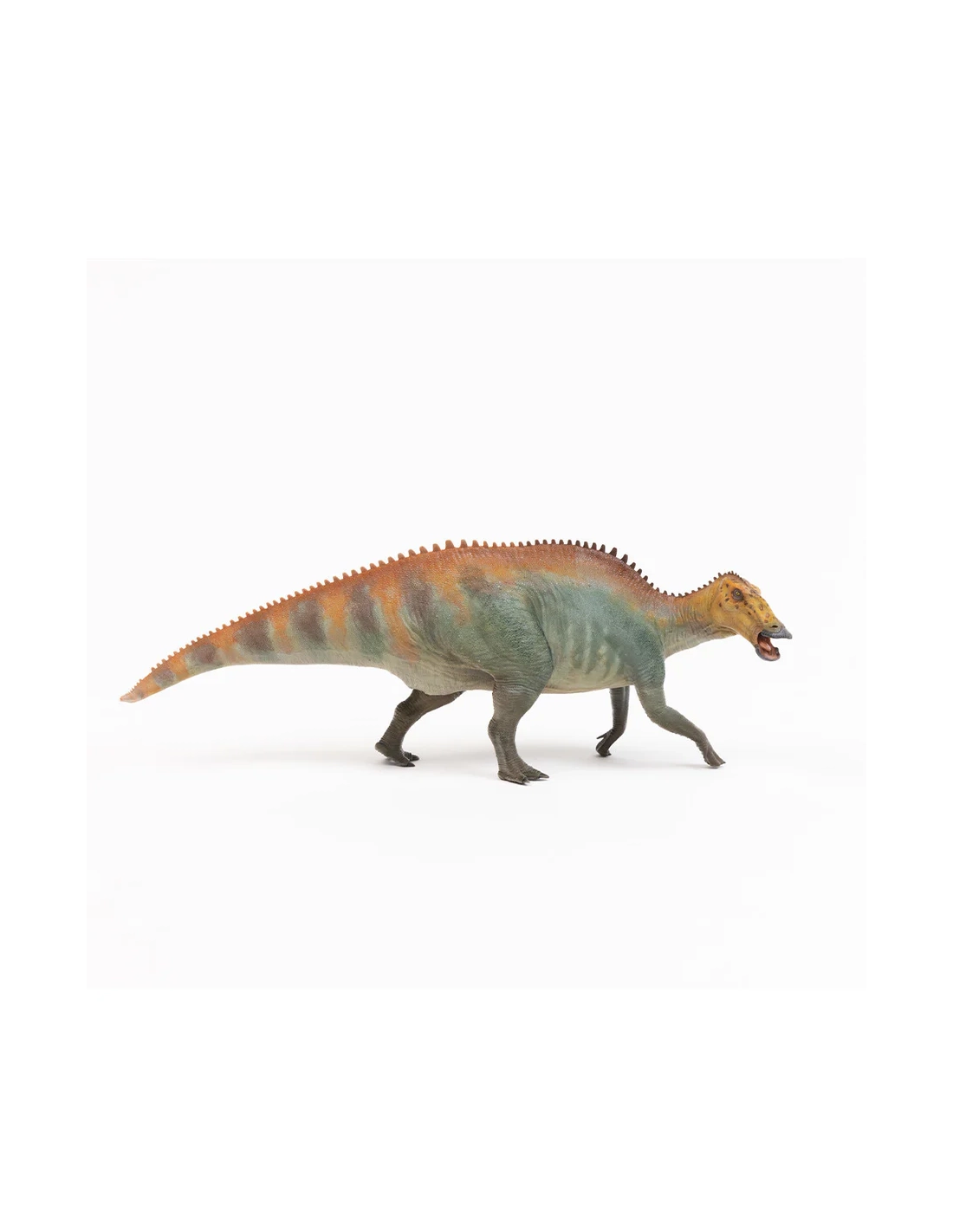 Cette figurine Papo représente un edmontosaure, grand dinosaure herbivore ayant vécu à la fin du Crétacé, il y a environ 70 à 66 millions d’années. Appartenant à la famille des hadrosauridés, aussi appelés dinosaures à bec de canard, l’edmontosaure était l’un des herbivores les plus répandus d’Amérique du Nord.