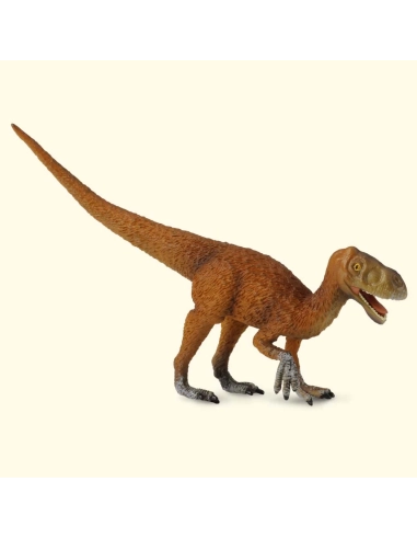 Cette figurine CollectA reproduit l'Eotyrannus, l'un des tyrannosauroïdes les plus précoces jamais découverts en Europe. Décrit en 2001 par Steve Hutt, Darren Naish et leurs collègues à partir d'un squelette partiel exhumé sur l'Île de Wight, il offre un aperçu rare de la lignée qui mènera, plus de 60 millions d'années plus tard, aux géants comme Tyrannosaurus rex.