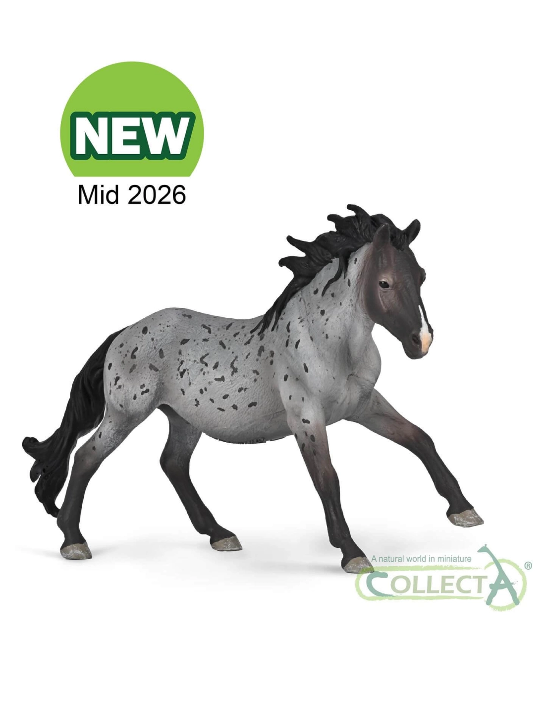 L'une des robes les plus rares dans les gammes équines CollectA. Tête et membres sombres, corps gris moucheté : un contraste distinctif rendu avec ses nuances propres.