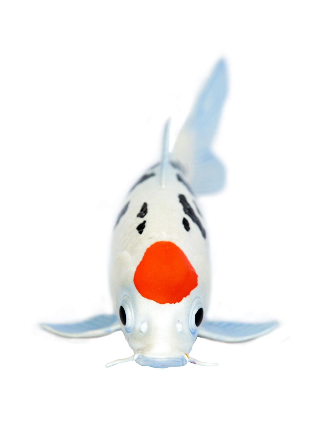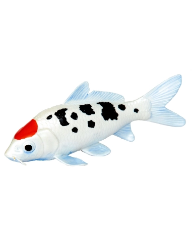 - Caractéristiques : Ce jouet poisson koi est adorables et coloré. Il est décoré avec le style Tancho de koi, avec un point rouge-orange proéminent sur son front, qui rappelle la tête de la grue japonaise. Le corps est d'un blanc chatoyant avec des taches noires.