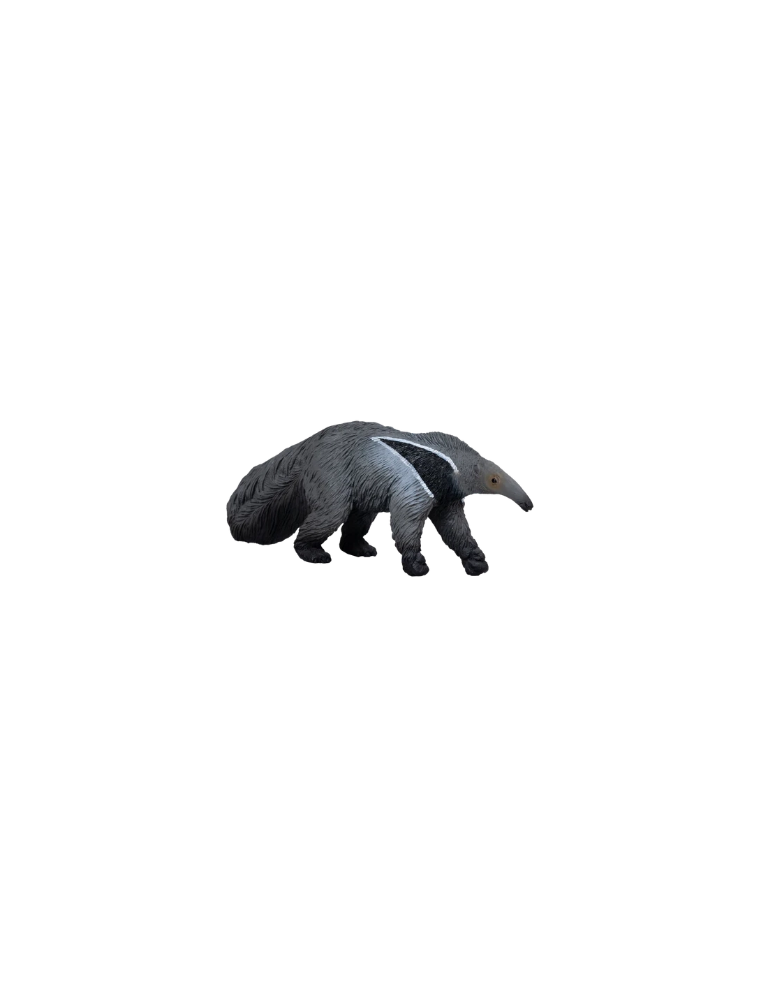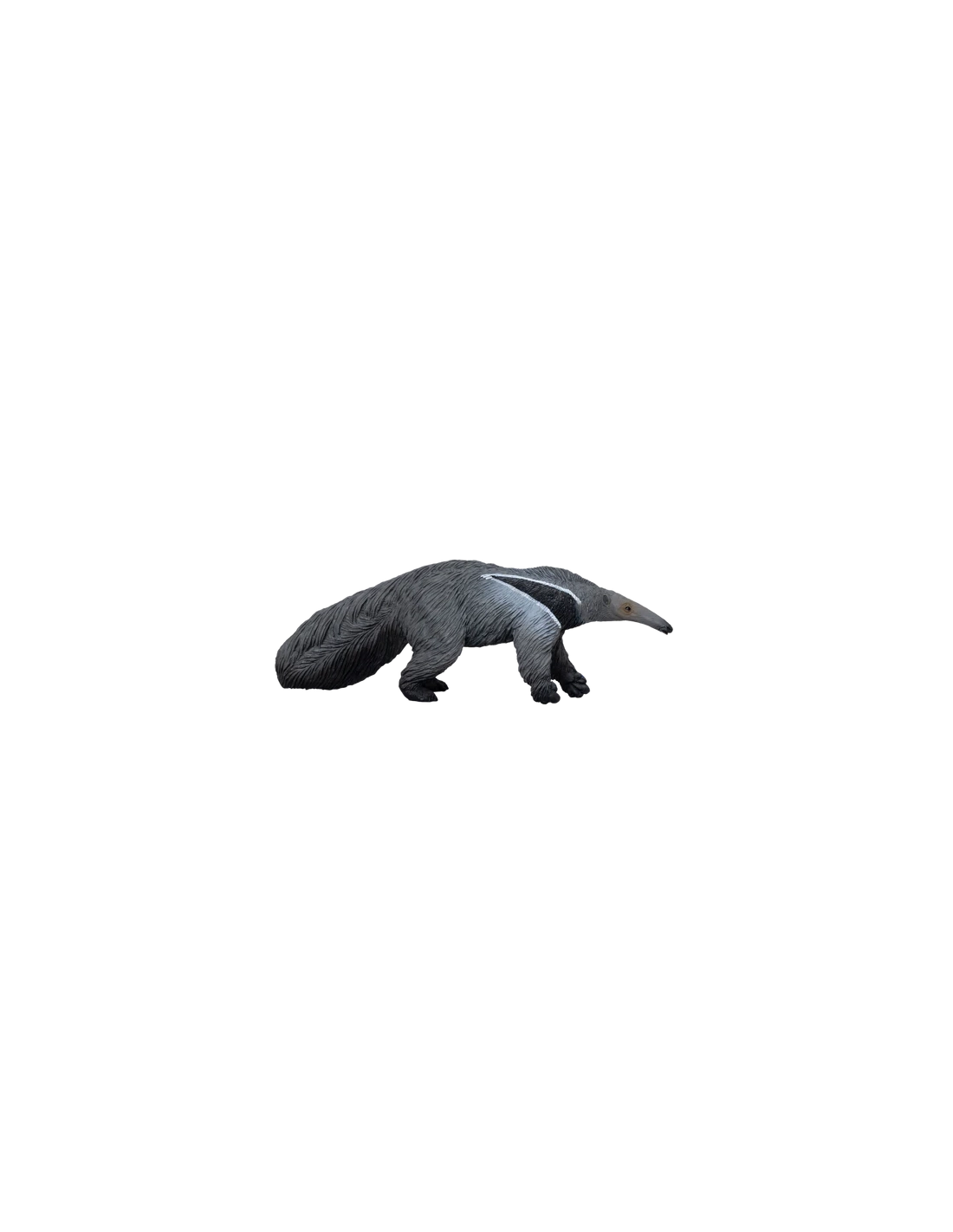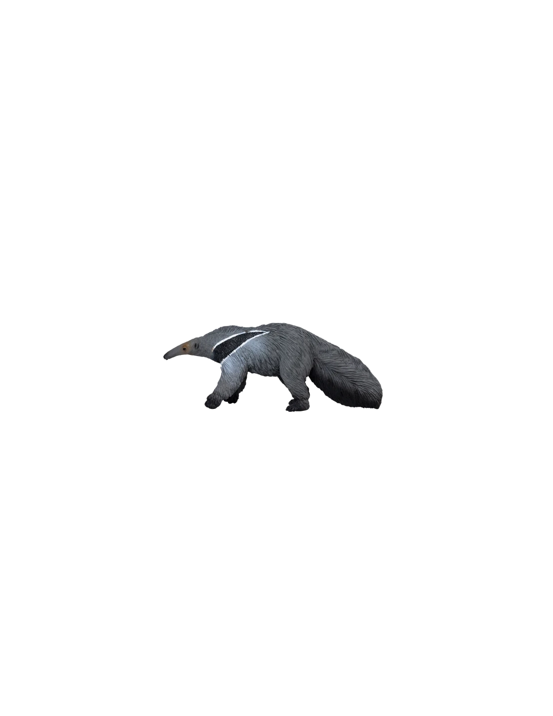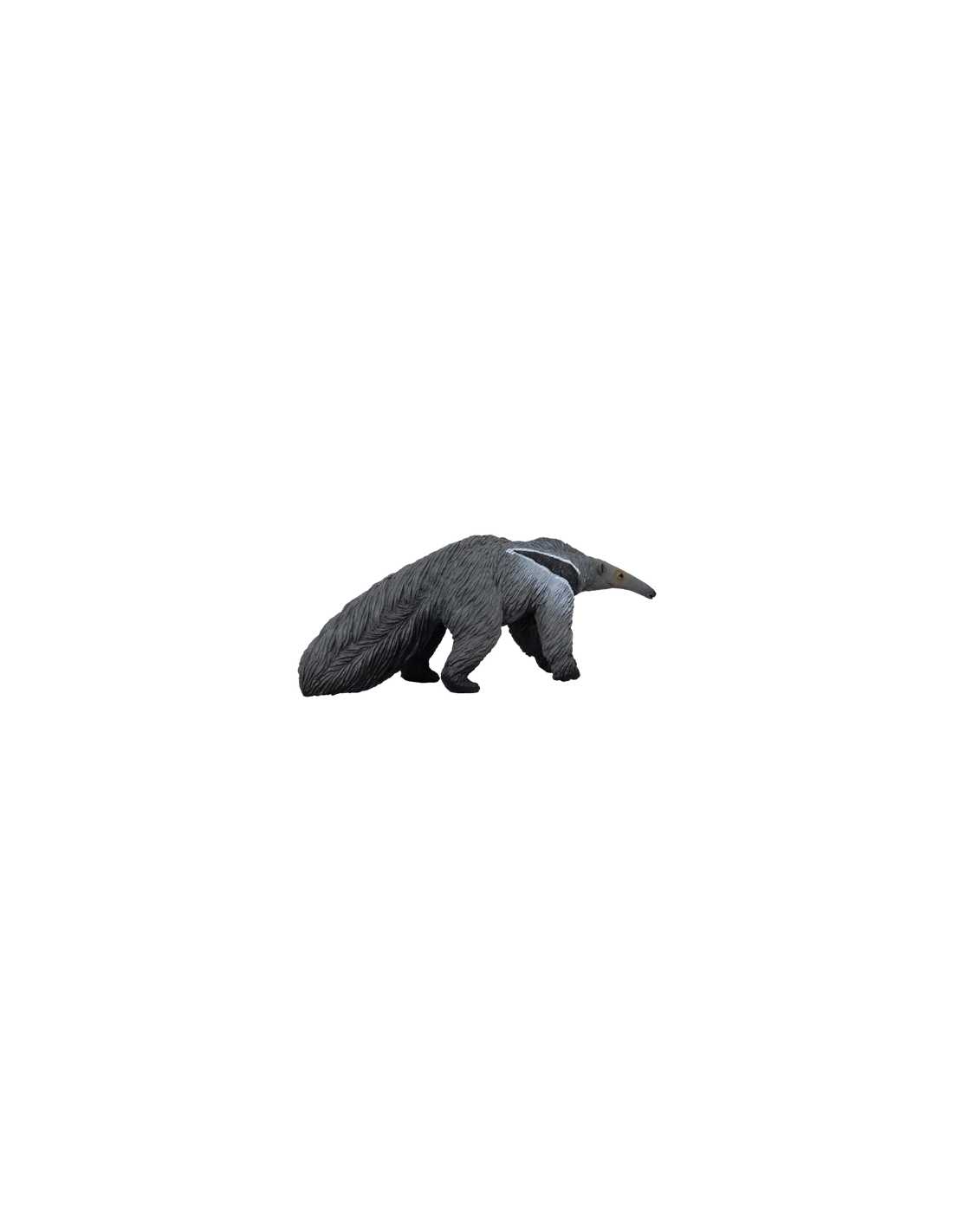 La Figurine de Fourmilier Géant Mojo est une représentation réaliste et éducative de cet animal unique. Sculptée en position de marche, cette figurine présente un corps peint principalement en noir avec des nuances de gris dans sa fourrure. Son long nez et sa tête mince sont parfaits pour flairer de la nourriture et son cou présente une bande blanche frappante qui souligne une tache noire sur son corps.