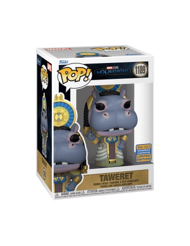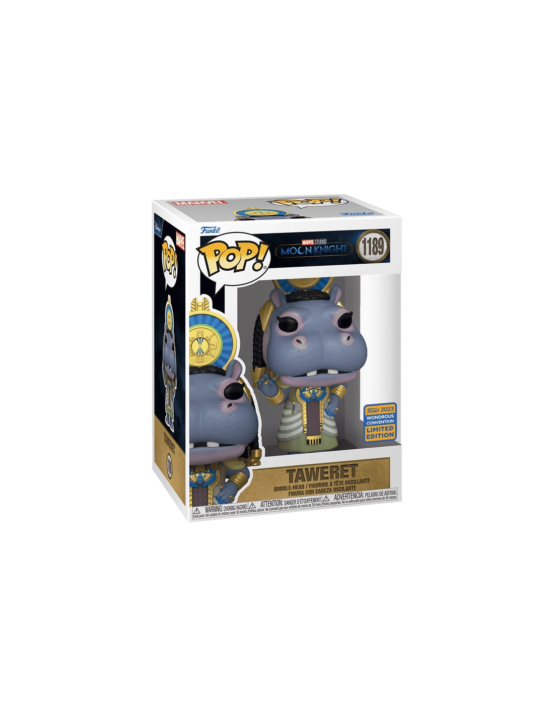 Découvrez la majestueuse figurine Funko Pop! Taweret, la déesse hippopotame protectrice des âmes, inspirée de la série Marvel Moon Knight. Cette figurine exclusive, numérotée 1189, a été dévoilée lors de la Wondrous Convention 2023 en édition limitée, faisant d'elle un véritable trésor pour les collectionneurs et les fans de Marvel.