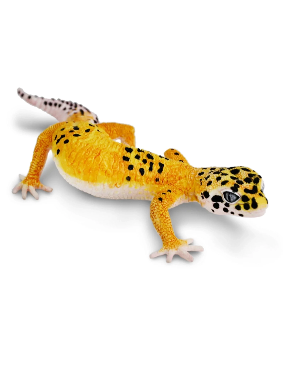 Caractéristiques de la Figurine : Cette figurine de Gecko Léopard met en avant les traits emblématiques de cette espèce. Vous serez charmé par sa coloration jaune et ses taches noires qui lui donnent son nom, son corps à la texture bosselée, sa queue épaisse.