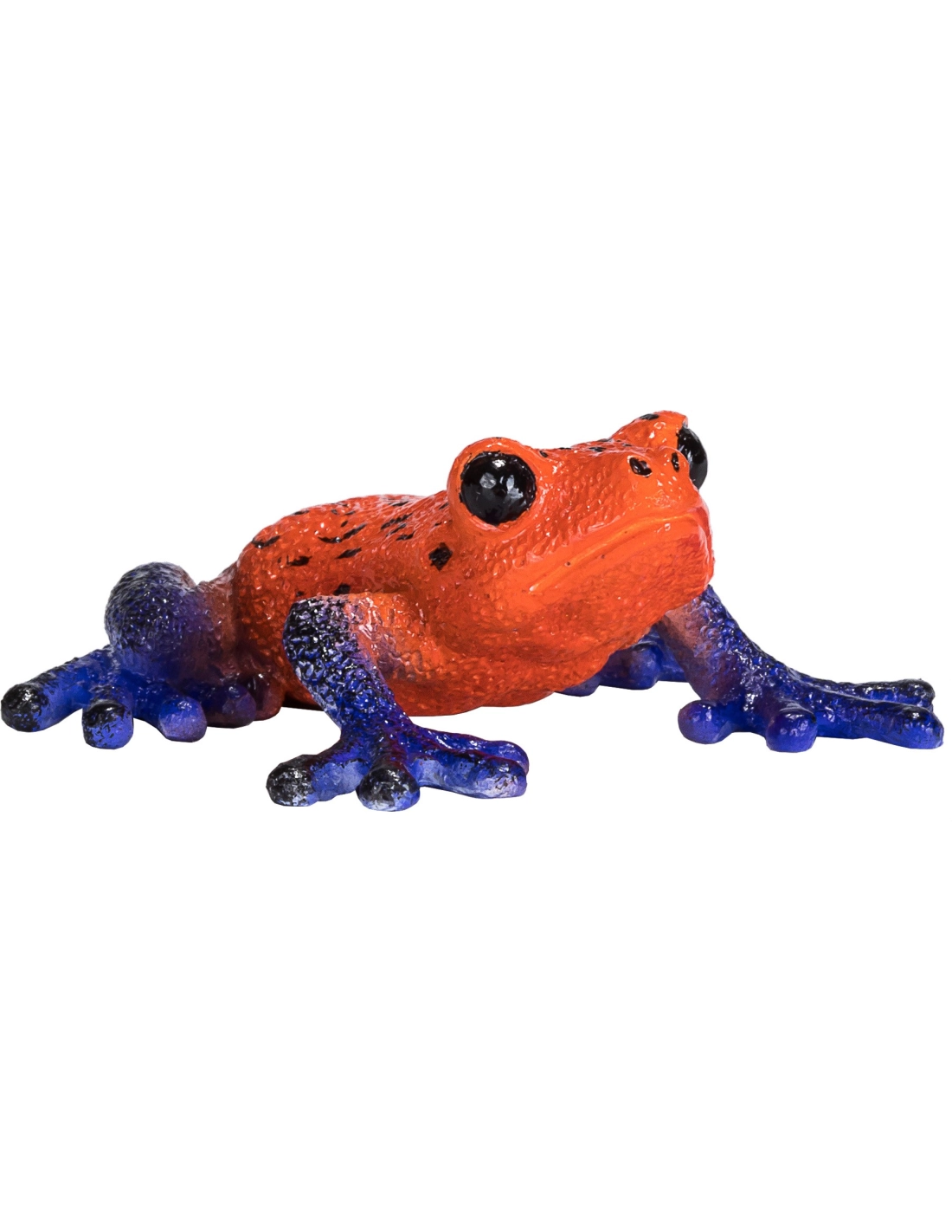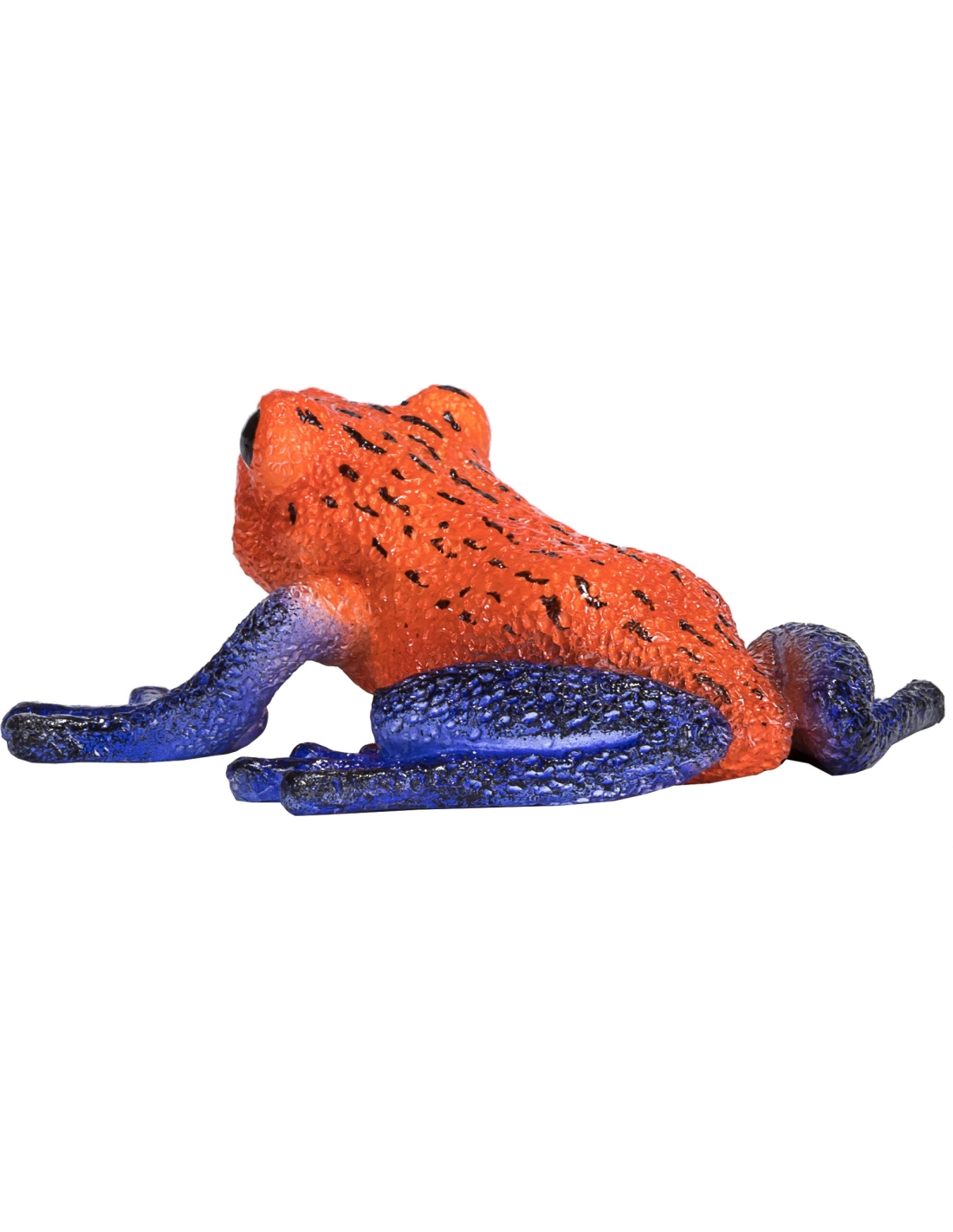 Cette figurine représente une dendrobate bleue aux couleurs éclatantes. Son corps compact et ses motifs caractéristiques sont reproduits avec une grande fidélité. Ces minuscules amphibiens comptent parmi les vertébrés les plus toxiques au monde.