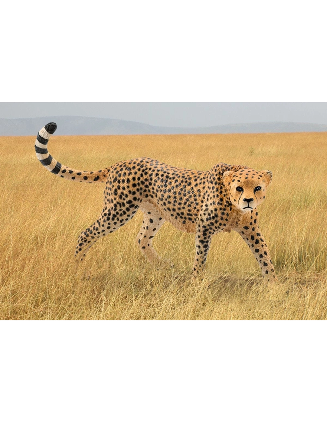 Le guépard est le mammifère terrestre le plus rapide au monde, capable d'atteindre 110 km/h en quelques secondes. Cette figurine capture parfaitement la silhouette élancée et aérodynamique de la femelle guépard, avec son corps mince, ses longues pattes et sa tête relativement petite. Chaque détail anatomique est fidèlement reproduit, des taches distinctives de son pelage à sa queue longue qui lui sert de balancier.