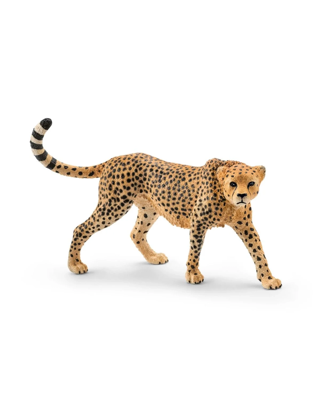 Cette figurine Schleich représente avec précision une femelle guépard, le félin le plus rapide du monde. Son corps élancé, son pelage tacheté et sa posture attentive typique sont parfaitement reproduits pour un réalisme optimal dans les jeux et collections sur la faune africaine.