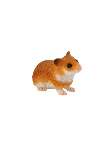 Le hamster doré est représenté dans une posture curieuse et alerte, typique de l'espèce. Son pelage doré et ses petites pattes sont finement sculptés, capturant l'essence même de ce petit animal fouineur et actif.