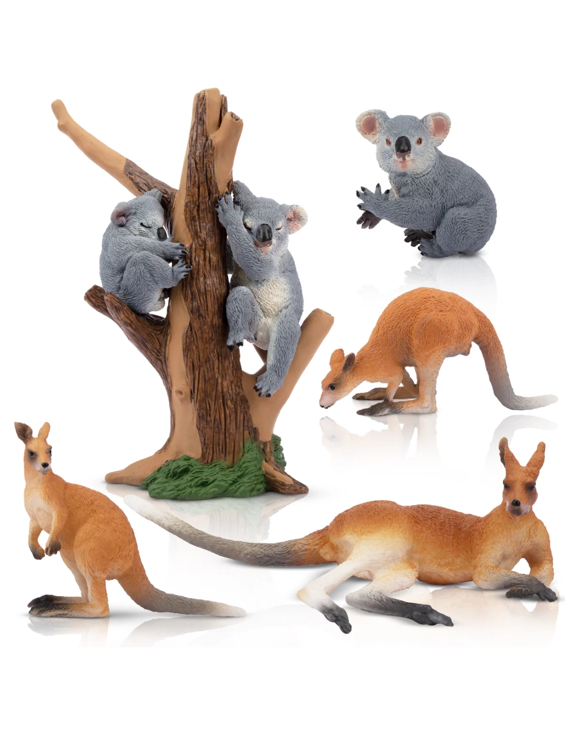 La figurine de koala mâle endormi de ToyMany (Phascolarctos cinereus) permet de découvrir les Animaux d’Australie. Espèce : marsupial. Habitat : forêts d’eucalyptus. Ce jouet réaliste est une figurine à collectionner.