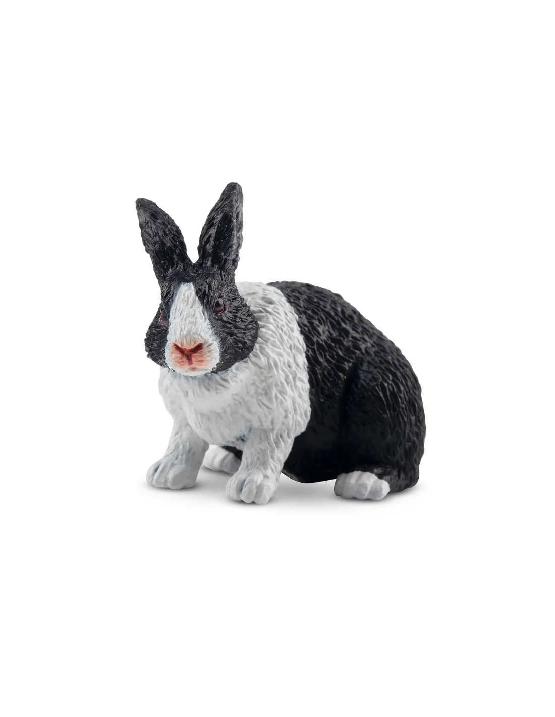 La figurine de lapin hollandais de ToyMany (Oryctolagus cuniculus) permet de découvrir les Animaux d’Europe. Espèce : lagomorphe (race Hollandais). Habitat : maison, clapier. Ce jouet réaliste est une figurine à collectionner.