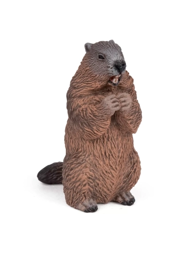 Cette reproduction de la Marmotte des Alpes (Marmota marmota) capture l'essence de ce mammifère emblématique des montagnes françaises. La figurine saisit parfaitement sa posture caractéristique de guet, typique de ces sentinelles des prairies alpines.