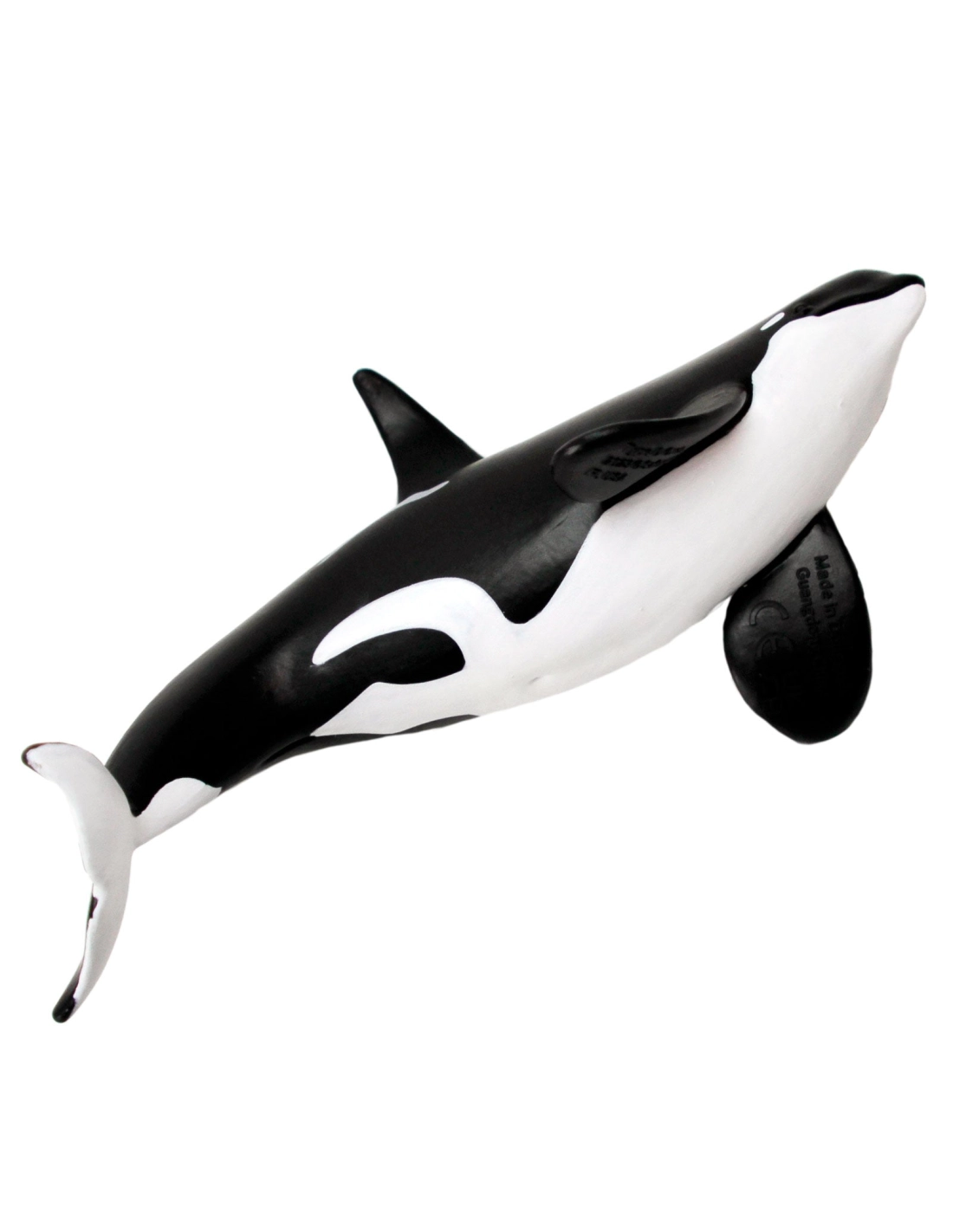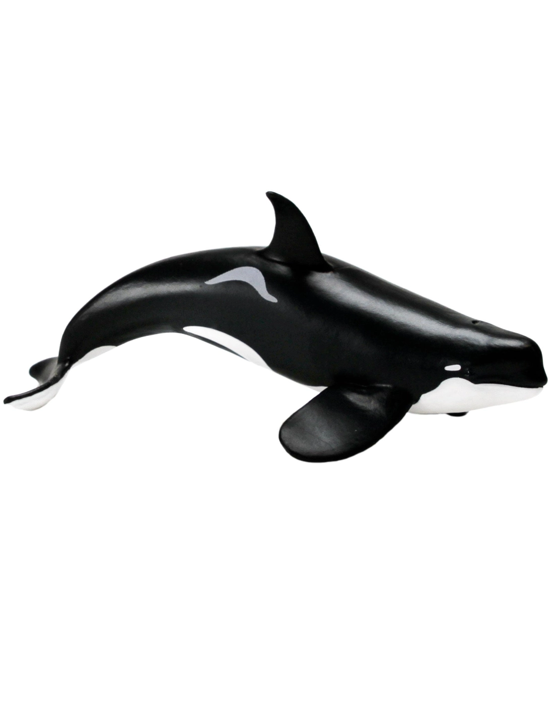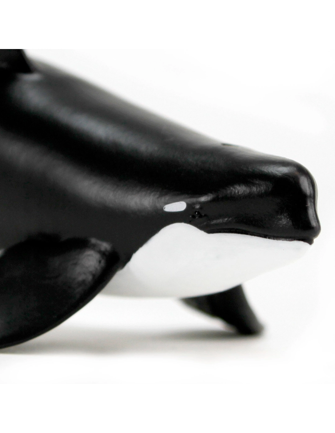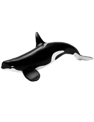 Découvrez l'Orca Type D en figurine réaliste de Safari Ltd, une représentation fidèle et détaillée de ce fascinant mammifère marin. Modélisée dans une position de nage courbée, cette figurine animale est peinte en noir avec un dessous blanc, une petite tache oculaire et une bande dorsale distinctive.