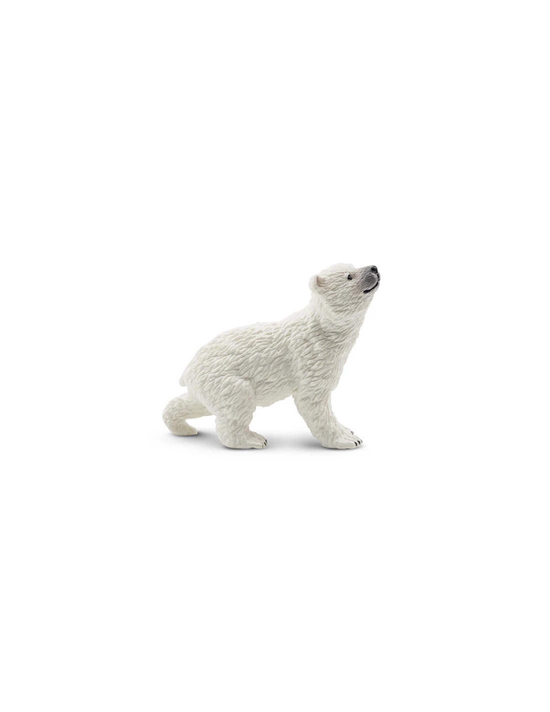 La figurine d’ourson polaire tête levée de ToyMany (Ursus maritimus) permet de découvrir les Animaux polaires. Espèce : jeune ursidé. Habitat : banquise arctique. Ce jouet réaliste est une figurine à collectionner.