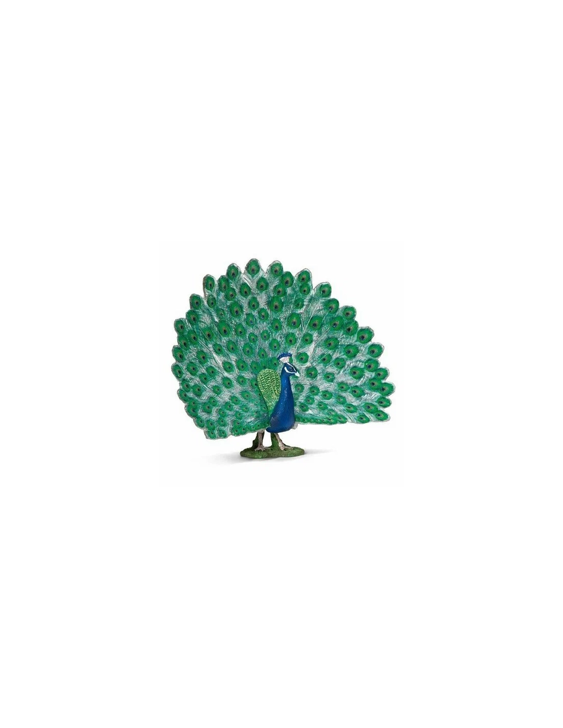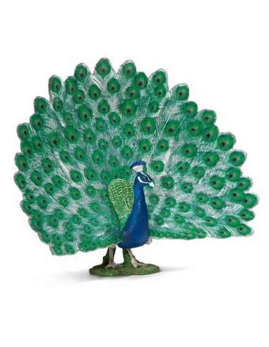 Le paon est sans conteste l'un des oiseaux les plus spectaculaires au monde. Cette figurine Schleich capture magistralement les caractéristiques qui ont fait sa renommée : sa roue de plumes aux motifs ocellés, sa tête surmontée d'une huppe en forme de couronne, et cette posture altière si caractéristique. En réalité, seul le mâle (paon) possède ces attributs colorés, la femelle (paonne) étant plus sobre.
