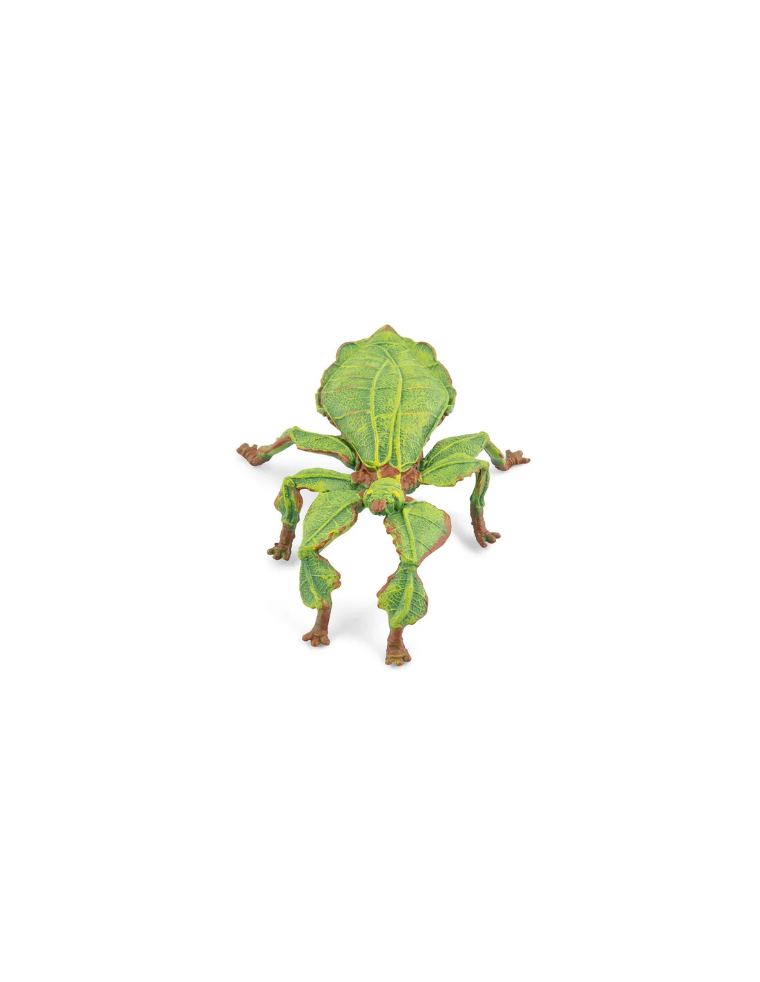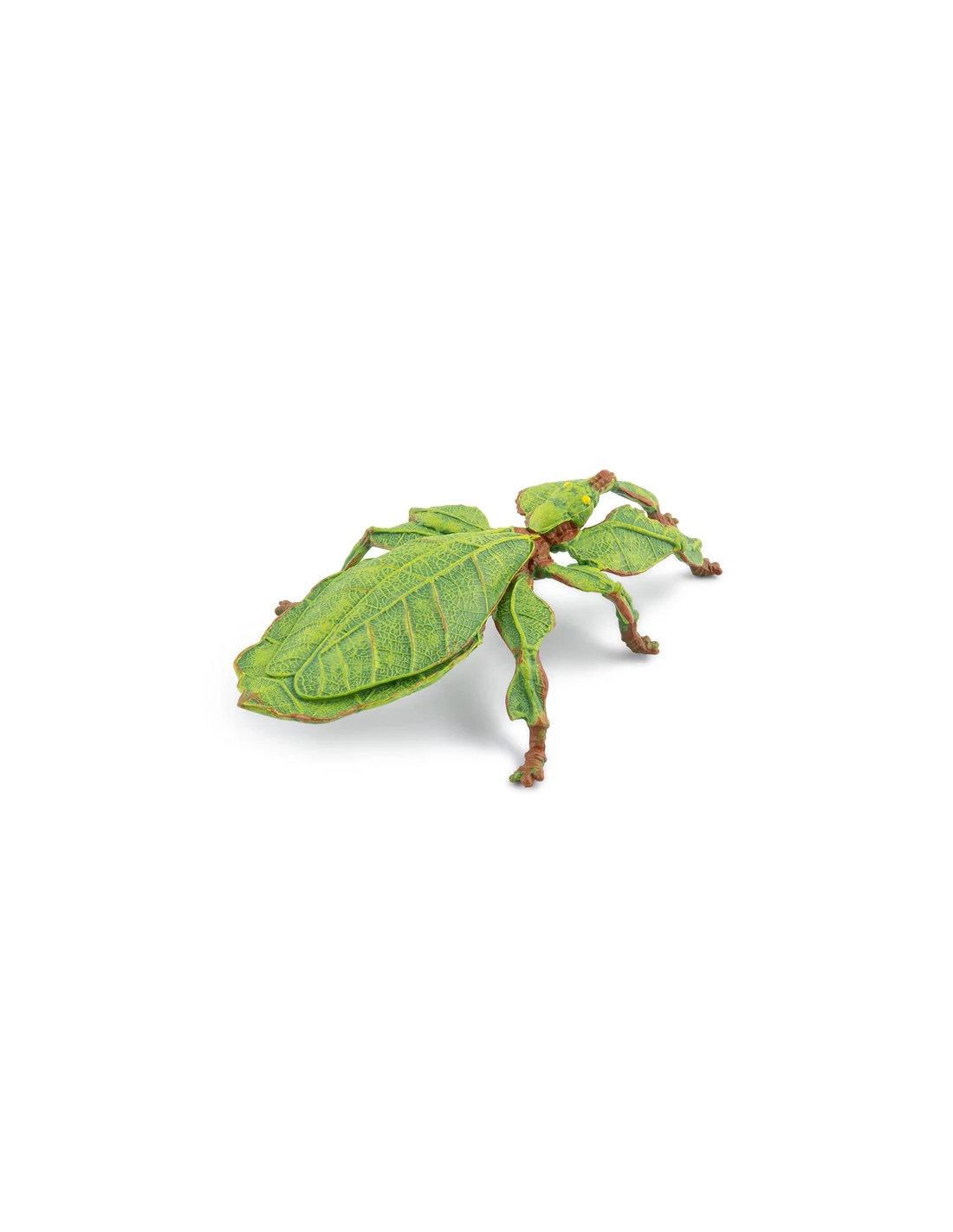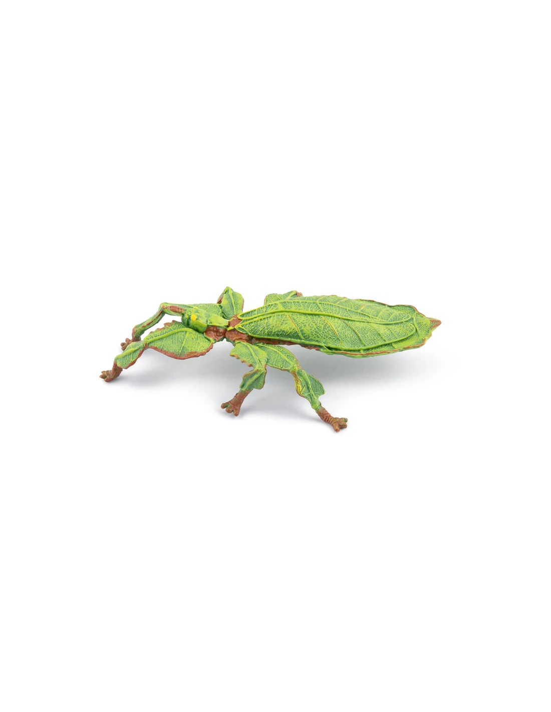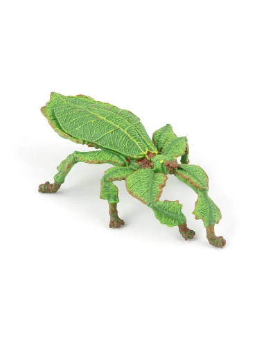 Le modèle reproduit fidèlement l’aspect aplati et nervuré du phasme feuille. Les pattes élargies, la texture rappelant une feuille légèrement flétrie et la posture immobile renforcent l’illusion végétale. Chaque détail évoque l’adaptation remarquable de cet insecte à son environnement naturel.