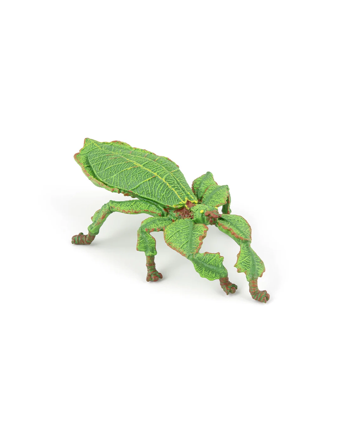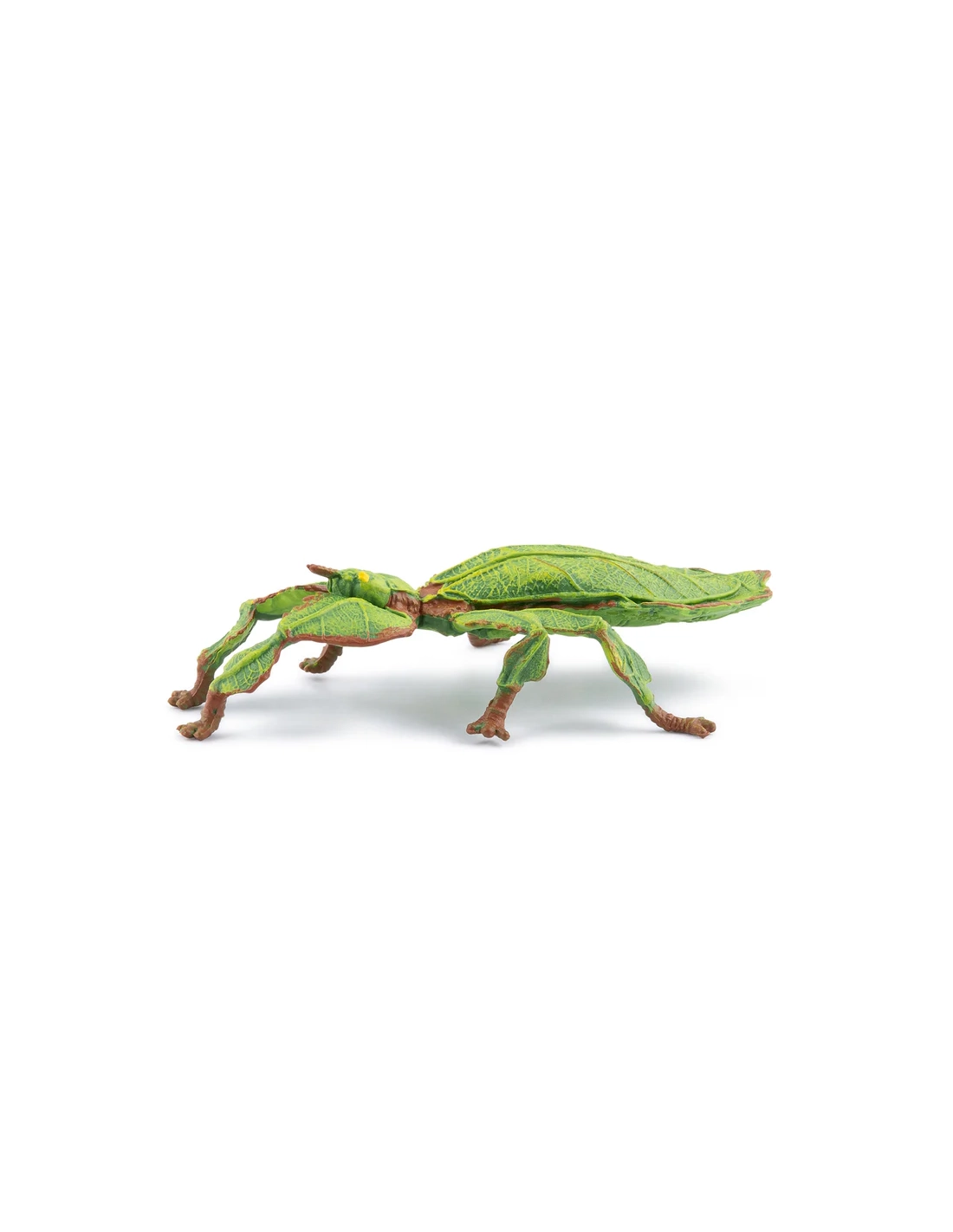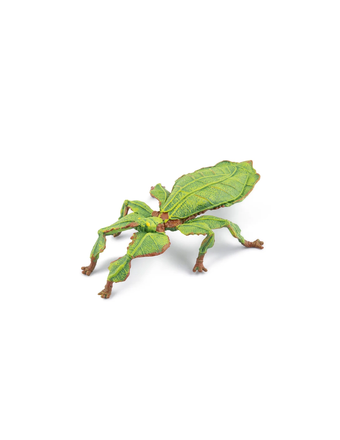 Le modèle reproduit fidèlement l’aspect aplati et nervuré du phasme feuille. Les pattes élargies, la texture rappelant une feuille légèrement flétrie et la posture immobile renforcent l’illusion végétale. Chaque détail évoque l’adaptation remarquable de cet insecte à son environnement naturel.
