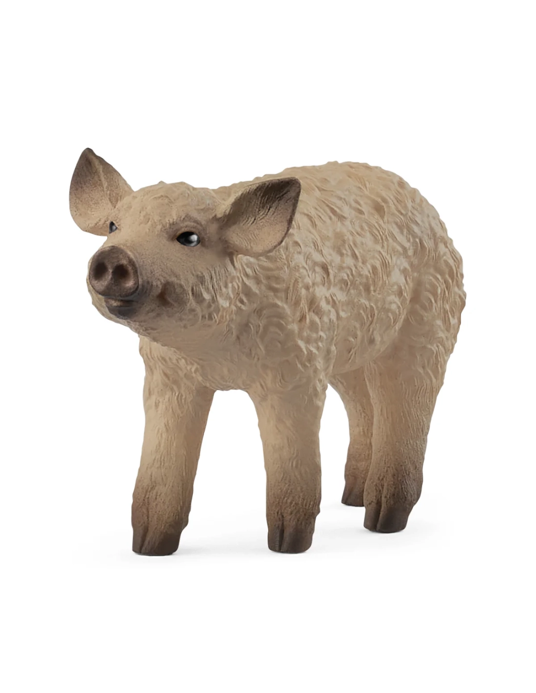 Ce porcelet Mangalica avec sa fourrure bouclée épaisse comme sa maman, ses yeux noirs étincelants et son groin tendu vers le ciel fait un air amusé. Bien plus qu'un simple jouet, cette figurine de l'univers des animaux de ferme reproduit ce bébé cochon laineux hongrois d'exception. Pour enrichir votre collection d'animaux de ferme et créer des scénarios avec ces jeunes animaux adorables.