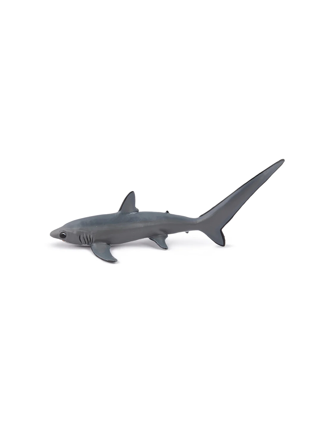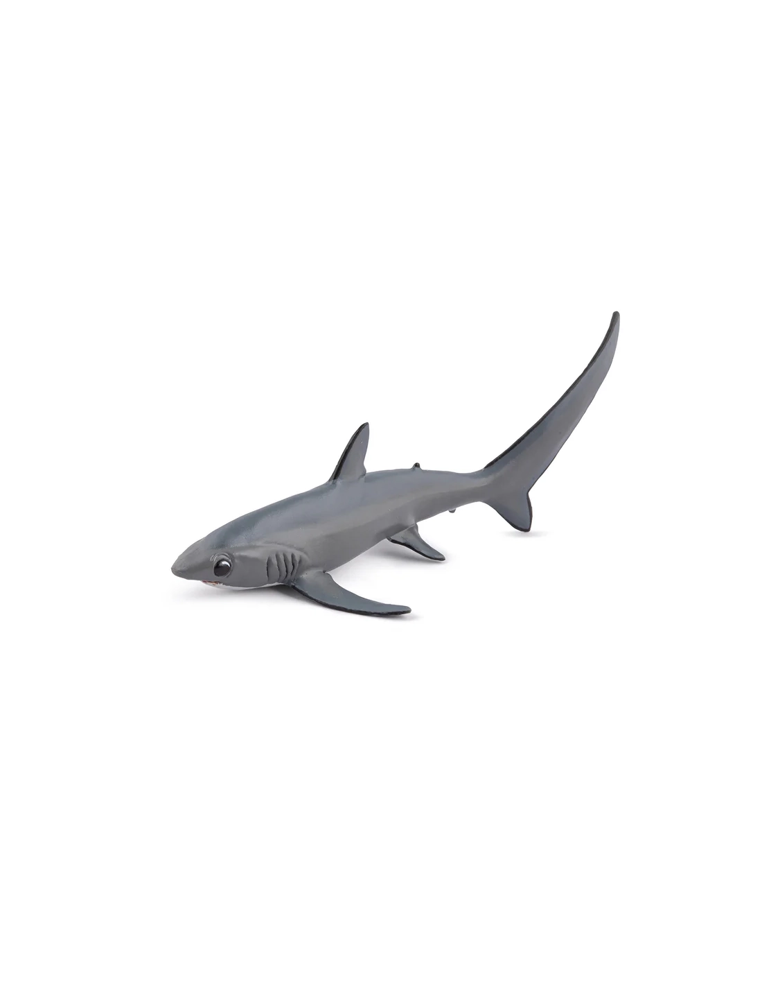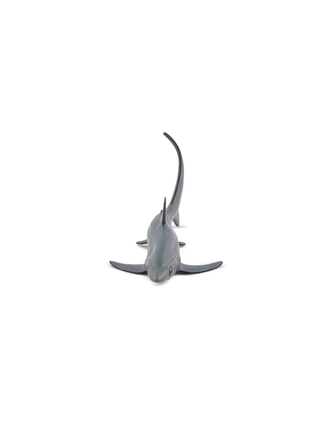 Impossible de le confondre avec un autre requin : la nageoire caudale du requin renard est aussi longue que son corps entier. Ce grand prédateur pélagique, aussi appelé renard de mer, se distingue autant par sa silhouette spectaculaire que par sa technique de chasse unique en son genre. La figurine Papo de la collection L'Univers Marin en restitue fidèlement la forme allongée, le dos gris ardoise et cette queue démesurée qui fait toute son identité.