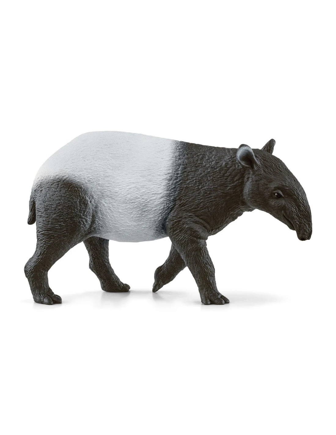 Cette figurine mammifère réaliste reproduit le Tapir terrestre, représentant moderne d'une lignée vieille de 50 millions d'années (*Tapirus terrestris*). Le modèle Schleich présente la trompe préhensile caractéristique et la morphologie robuste de ce "fossile vivant" des forêts néotropicales.