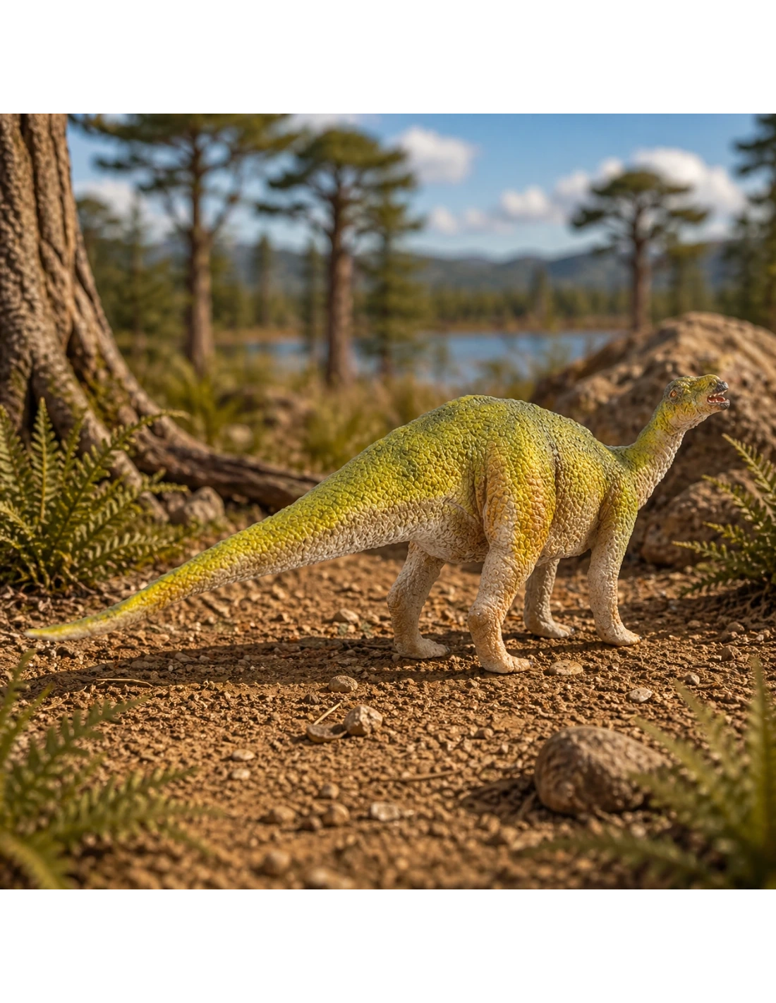 Cette figurine CollectA reproduit le Tenontosaurus, iguanodontien basal nord-américain décrit en 1970 par le paléontologue américain John Ostrom. Animal massif à la queue exceptionnellement longue, il occupe une place clé dans l'histoire de la paléontologie pour son association récurrente, dans les gisements de la formation Cloverly, avec les restes du célèbre théropode Deinonychus.