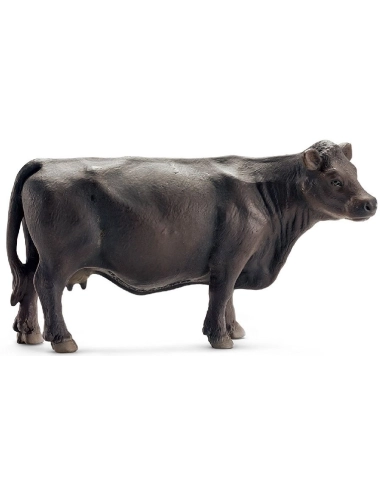 La figurine Schleich de la Vache Black Angus représente fidèlement cette race bovine originaire d'Écosse. Connue pour sa robe principalement noire, cette figurine en position debout reflète l'aspect robuste et la stature imposante de la vache Black Angus.