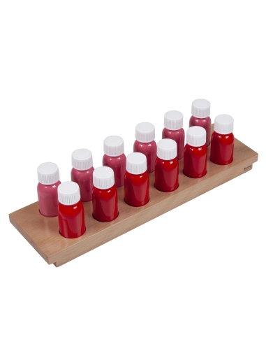 Un matériel Montessori composé d'une boîte et 63 tablettes. Avec la leçon en trois temps Montessori, l'enfant s'approprie le vocabulaire des couleurs. Vous pouvez lui proposer une activité Montessori de mise en paire, des jeux d'association avec objets du quotidien. Cet ensemble offre des couleurs secondaires...