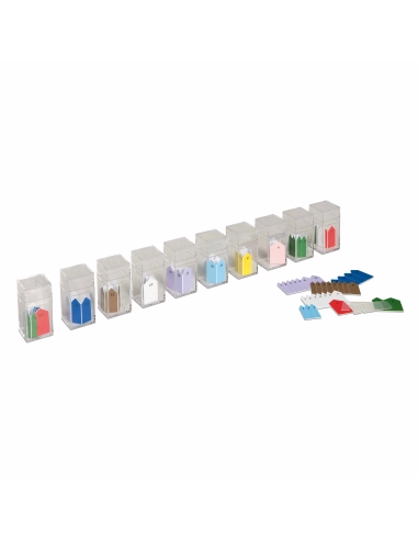 Cette série de prismes démontre à l'enfant le changement de largeur (largeur), tandis que la longueur reste constante.