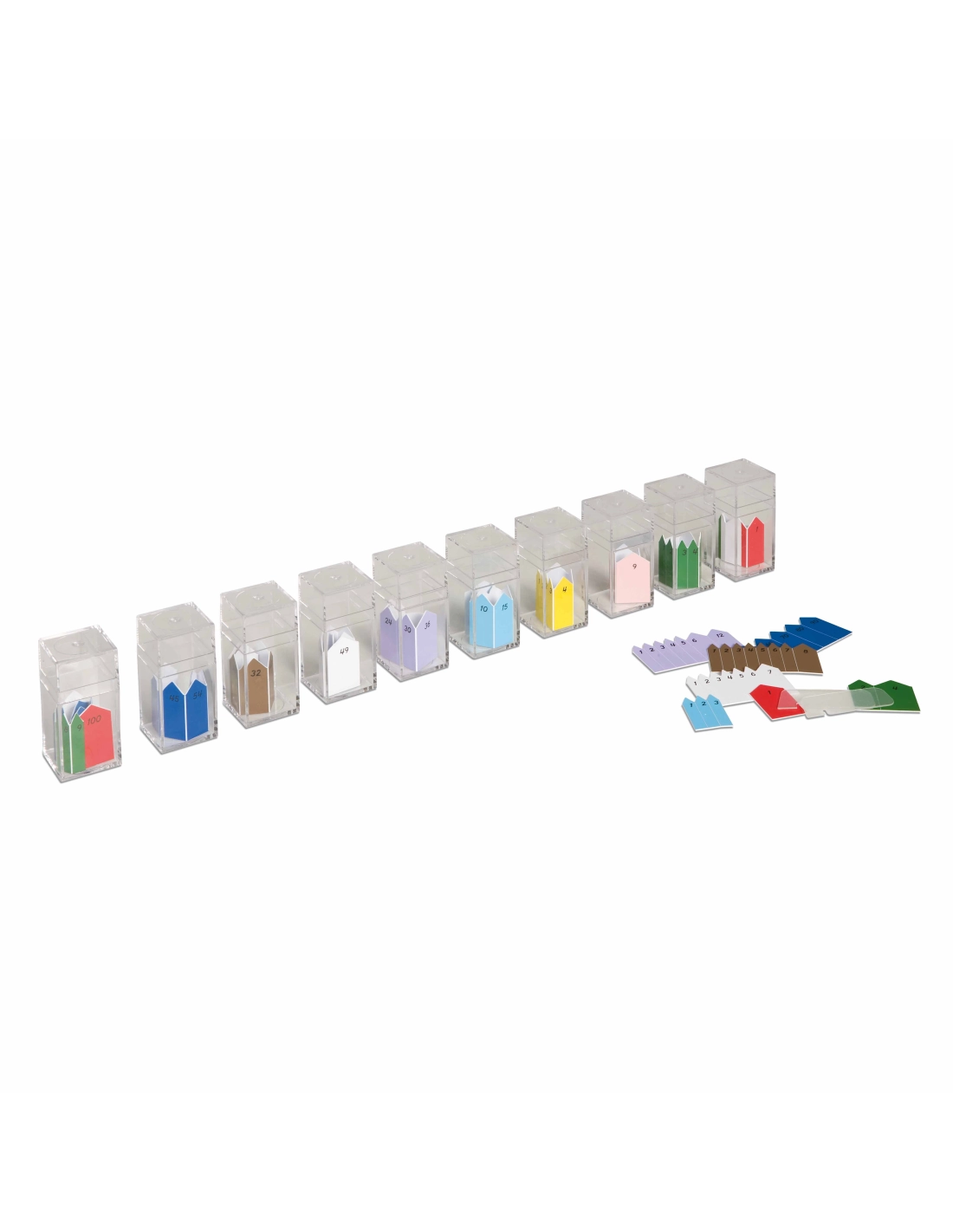 Ces petites barres permettent aux enfants d'apprendre l'addition et les compléments à 10 de manière concrète. Deux séries de 10 barres colorées rouge et bleu, parfaites pour le travail individuel à table. Les enfants découvrent les relations entre les nombres en manipulant.