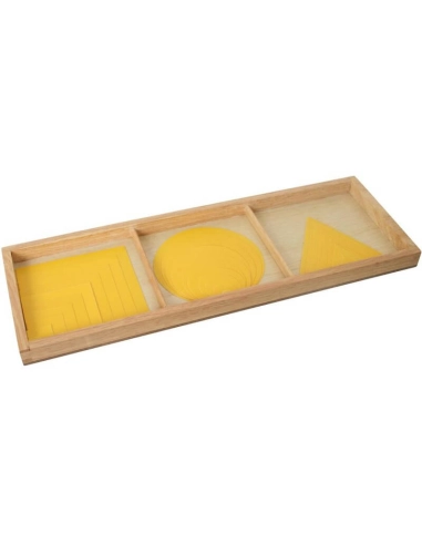 Dans la pédagogie Montessori, ce matériel permet à l'enfant de manipuler et d'explorer de manière sensorielle les trois formes géométriques de base. Ce matériel favorise l'exploration des formes, la comparaison des tailles, et l'apprentissage des couleurs. Il prépare également aux notions de sériation et de classification.