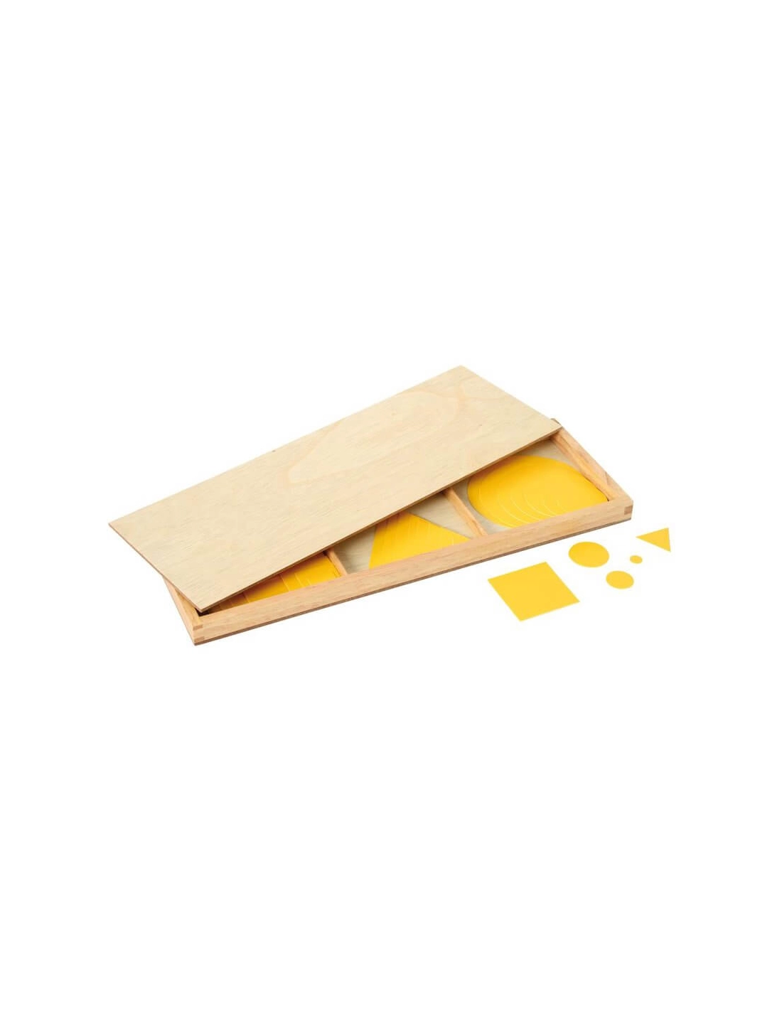 Explorez le monde de la géométrie avec nos Formes Géométriques Montessori en Bois (Jaune). Un matériel sensoriel pour découvrir les formes de base, les tailles et les couleurs primaires, en manipulant de manière concrète et ludique.