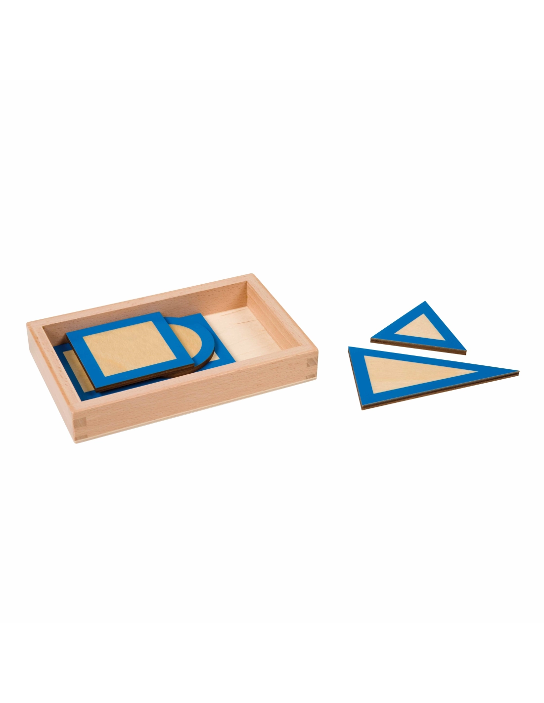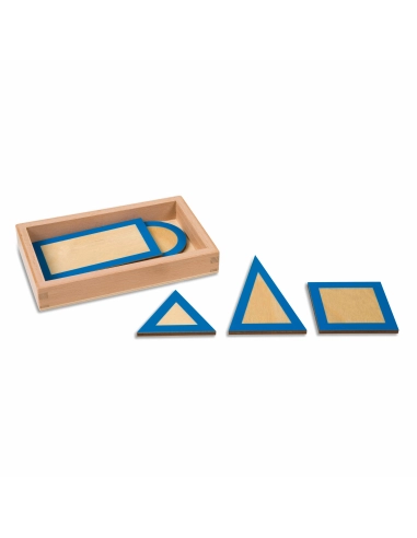 Peut-être utilisé seul en découverte des formes géométriques plane 2D ou en association aux volumes géométriques bleus Montessori.