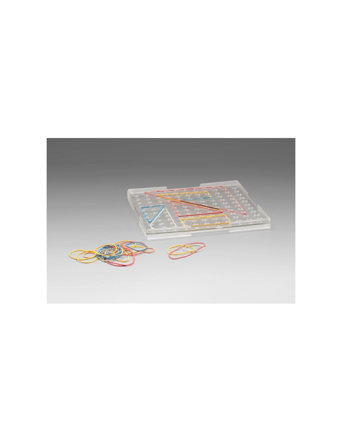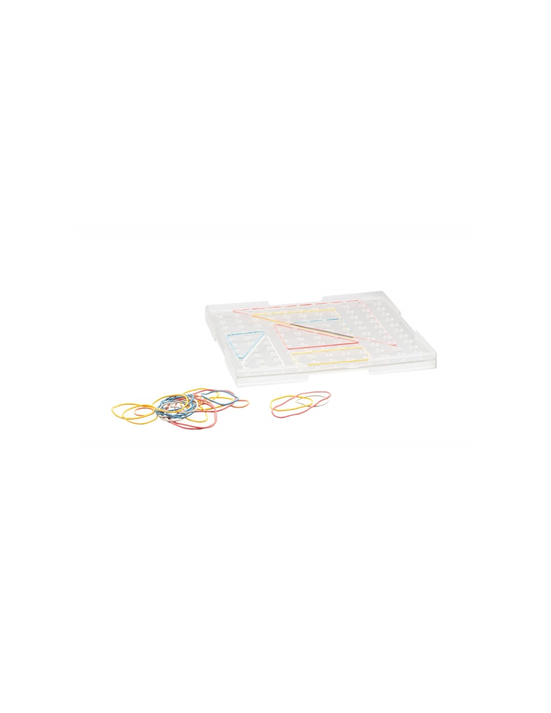 - Accessoires Inclus : 25 élastiques en 6 couleurs et 4 tailles différentes pour une variété de constructions géométriques, et 1 feuille avec 24 modèles inspirants pour guider l'apprentissage.