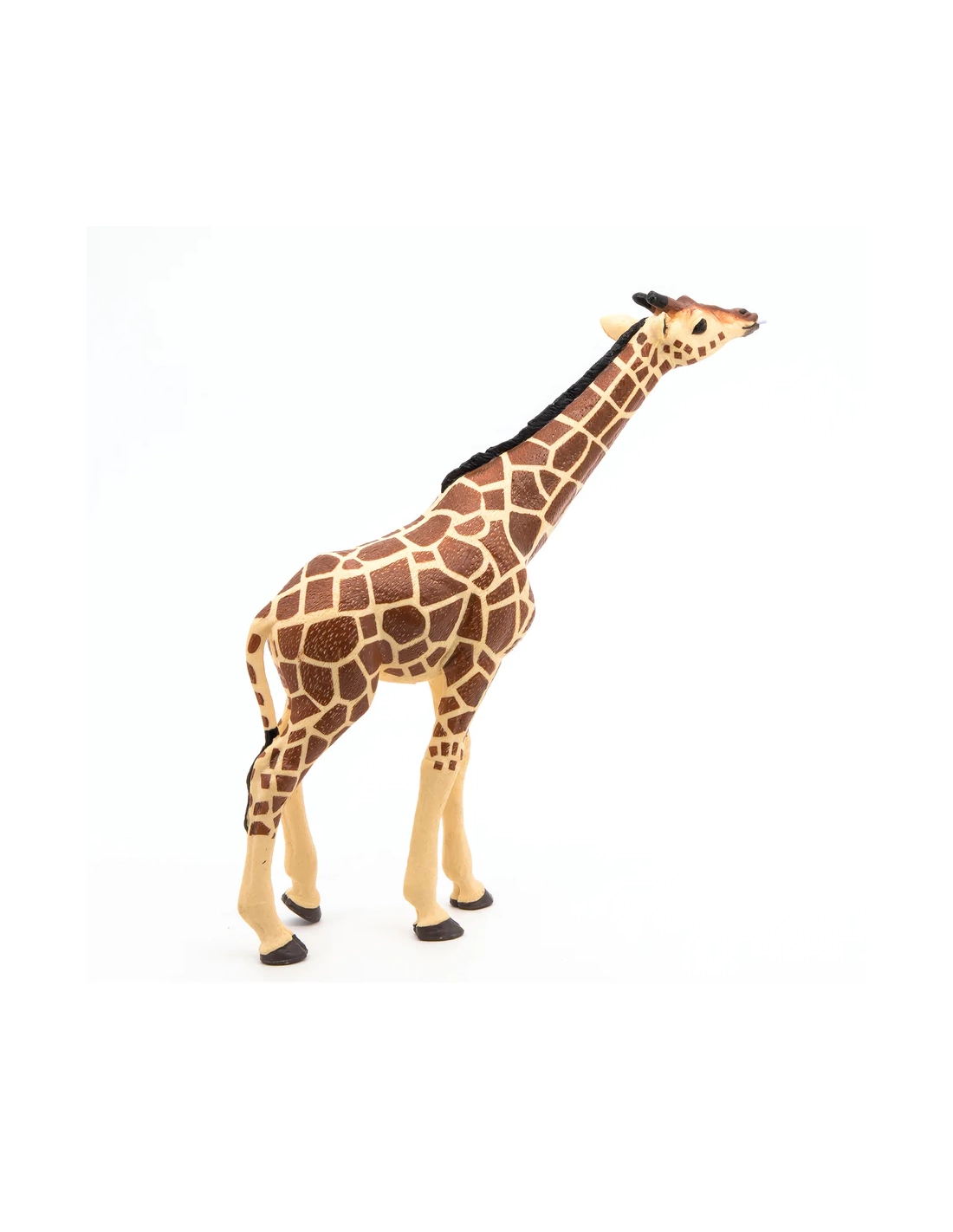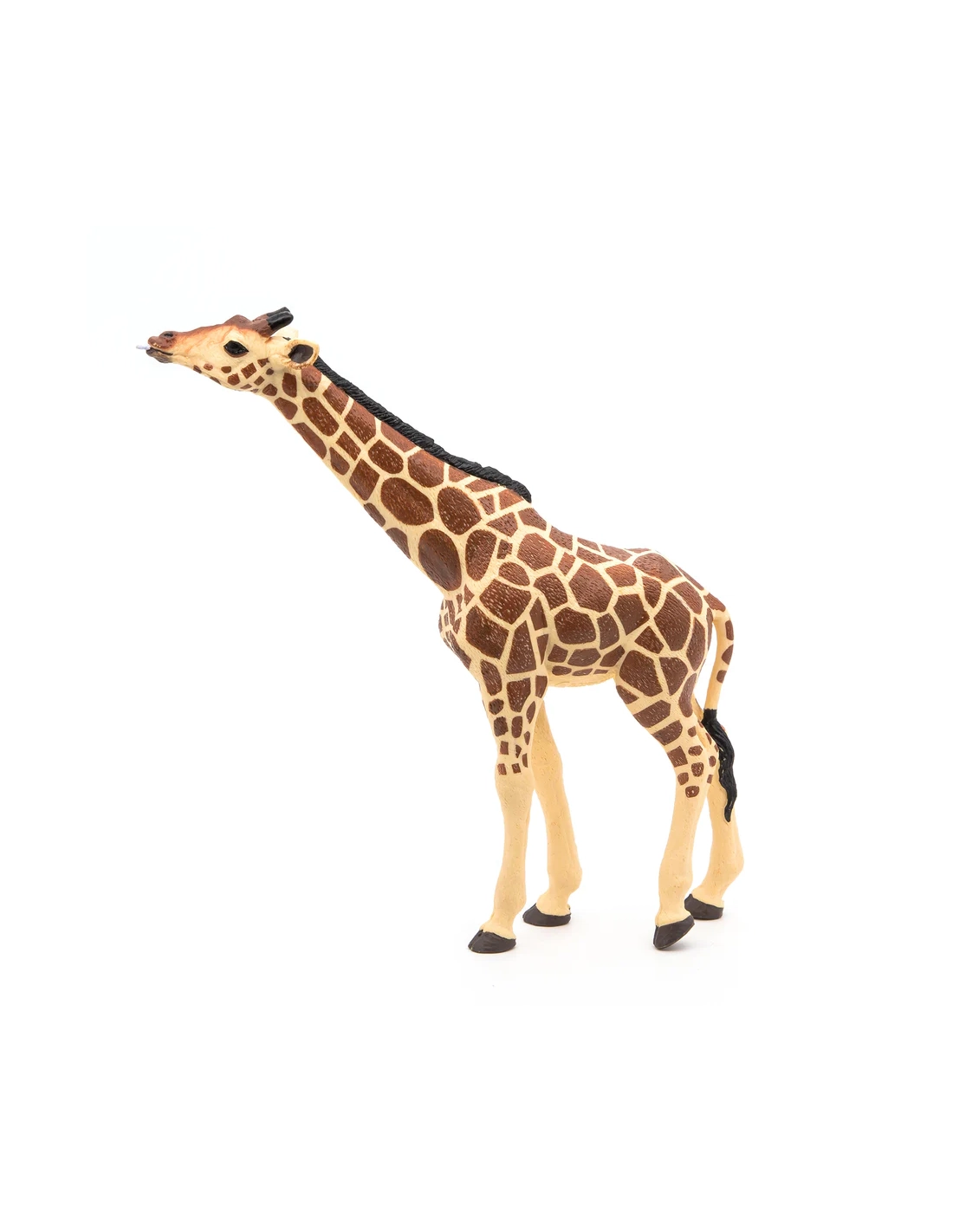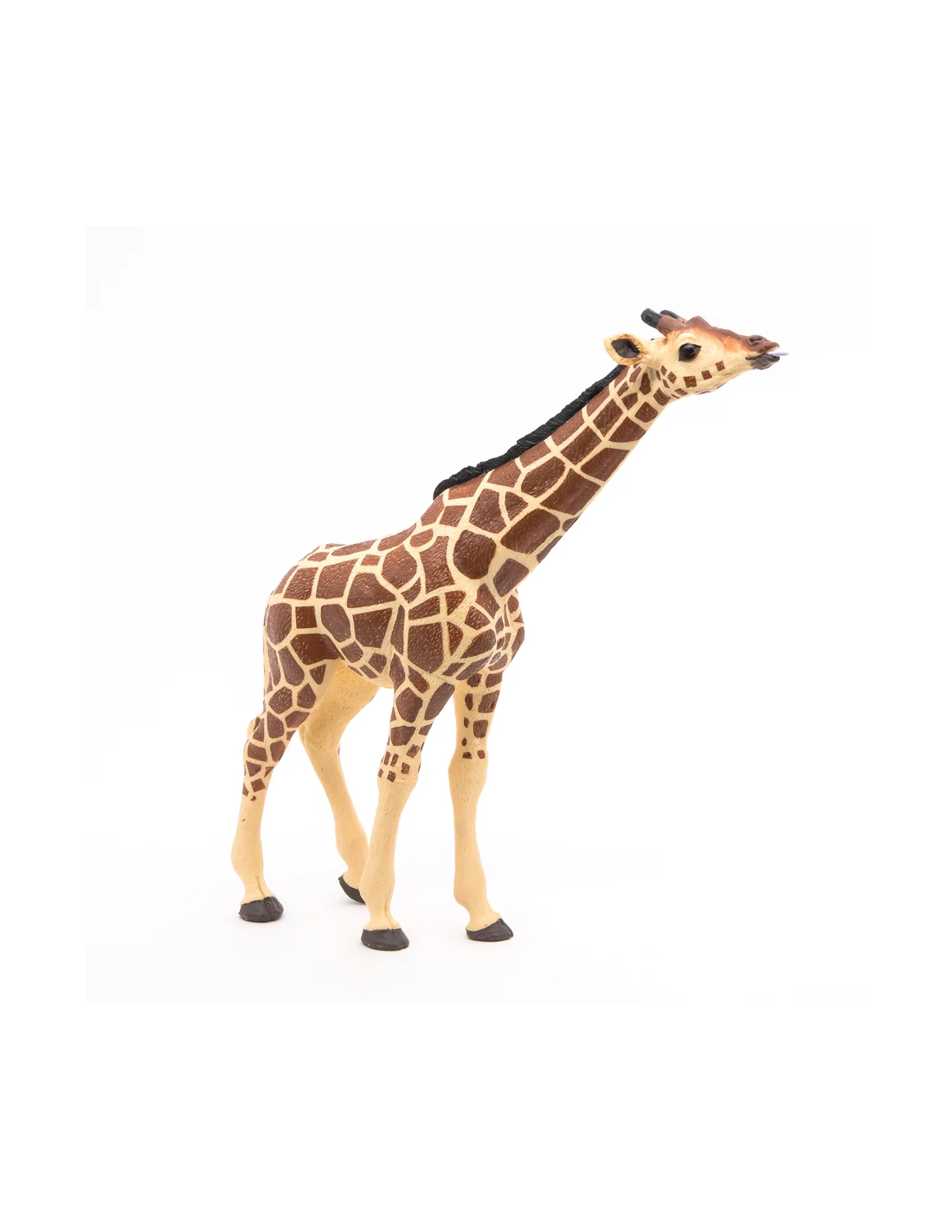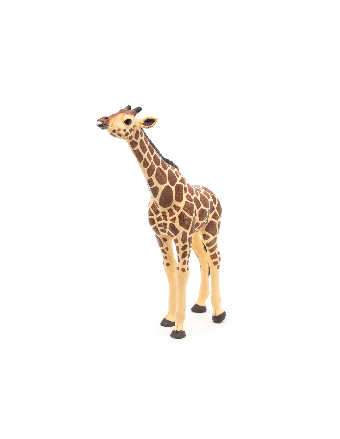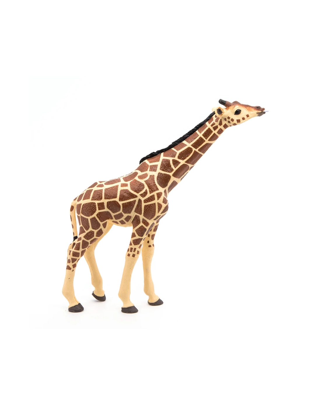 Si l'enfant ou le collectionneur possède déjà une girafe Papo en posture neutre, cette figurine tête levée langue sortie apporte une scène complémentaire — l'alimentation, le moment le plus caractéristique de l'espèce. Deux figurines, deux moments différents de la même journée d'une girafe. Une logique de collection naturaliste.